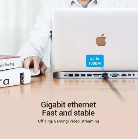 Estación de acoplamiento Tipo C HDMI USB 2.3 SD TF RJ45 VGA CPD 3.5 mm