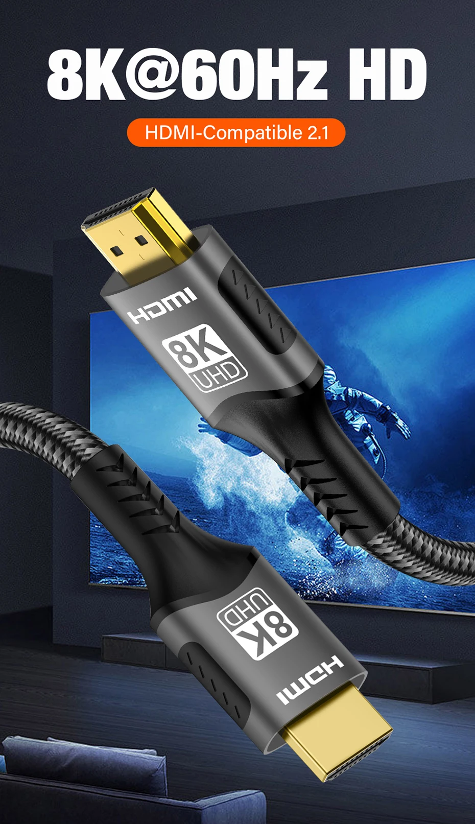 Cable HDMI 2.1 de 1/2/3/5 metros de longitud para PS5, Xbox, webcam, videocámara, TV Box, Fire Stick, portátil, HDCP, eARC, 8K 60 Hz, 4K 120 Hz