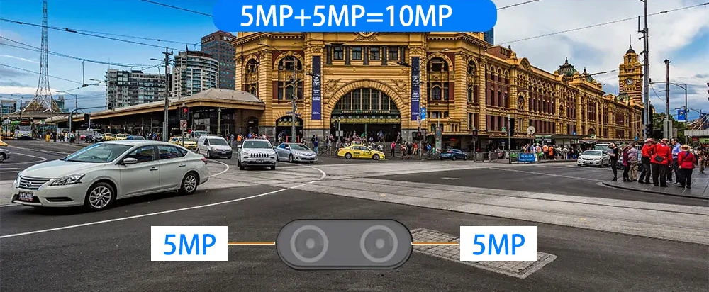 Cámara 5K, significa que tiene dos lentes, cada una de 5MP, 5MP+5MP=10MP.