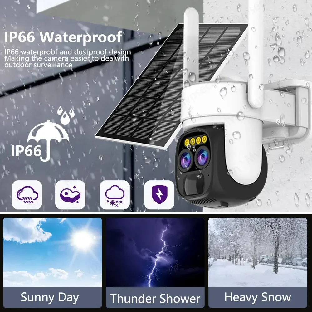 Cámara IP de vigilancia CCTV con zoom PTZ 10X, 10MP, 5K, WiFi, doble lente, audio, seguimiento automático por IA, zoom óptico 10X, 10MP, WiFi y alimentación solar.