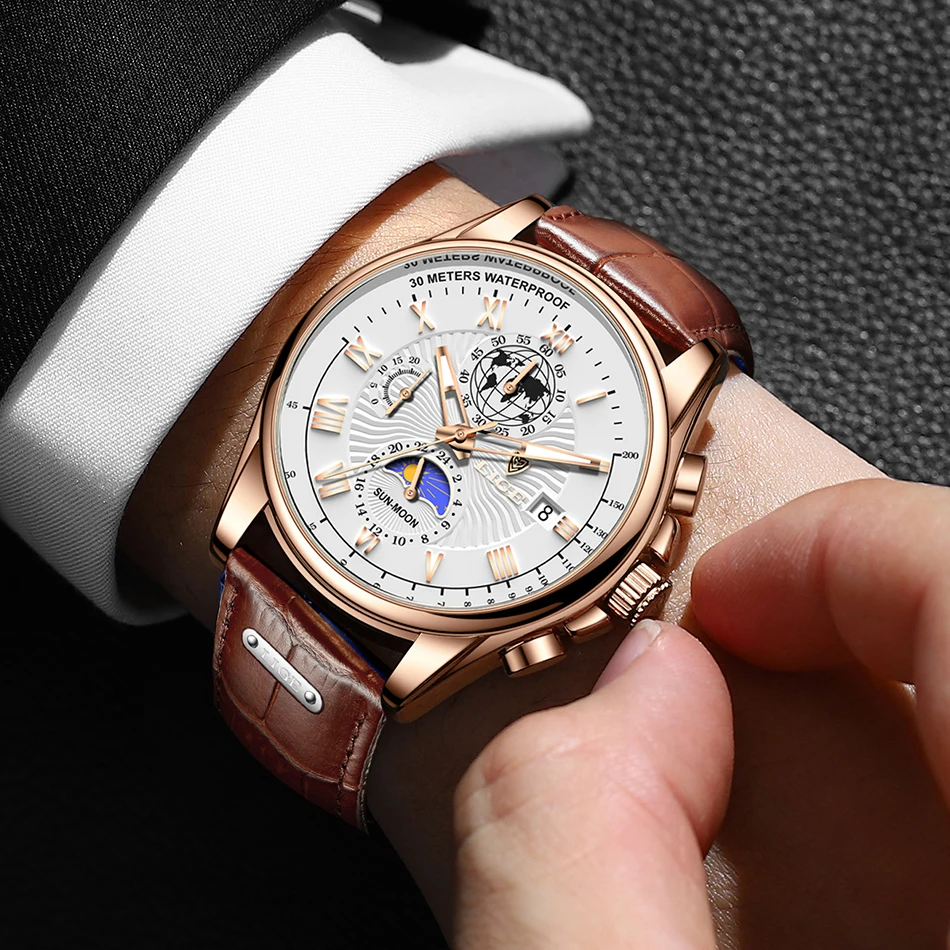 ★CRONÓGRAFO COMPLETAMENTE FUNCIONAL★Tres subesferas de cronógrafo, subesfera de segundos, subesfera de minutos y subesfera de 24 horas (función de fase lunar). Perfecto para todo tipo de actividades de negocios, informales, en interiores y exteriores, y para uso diario.