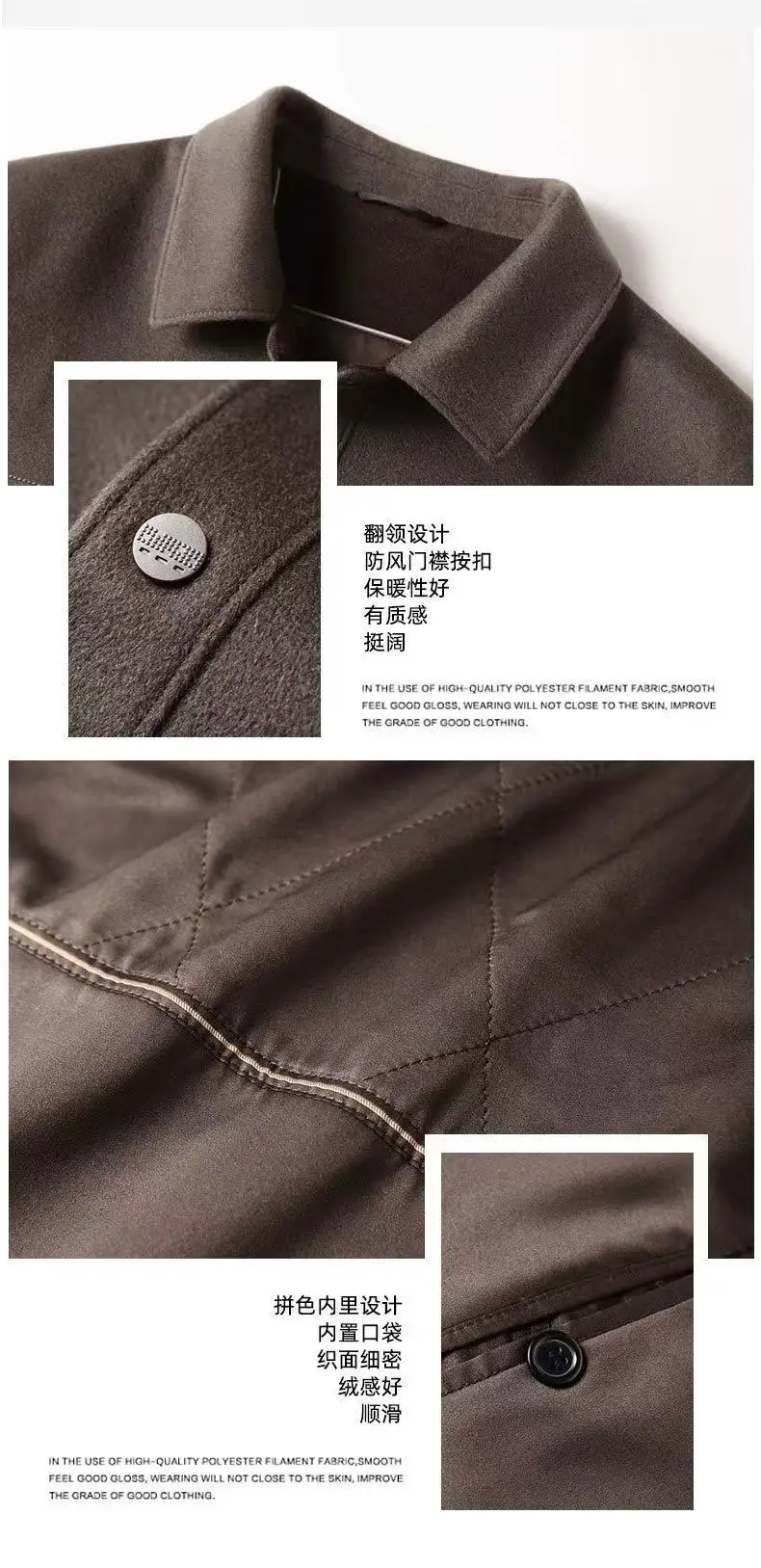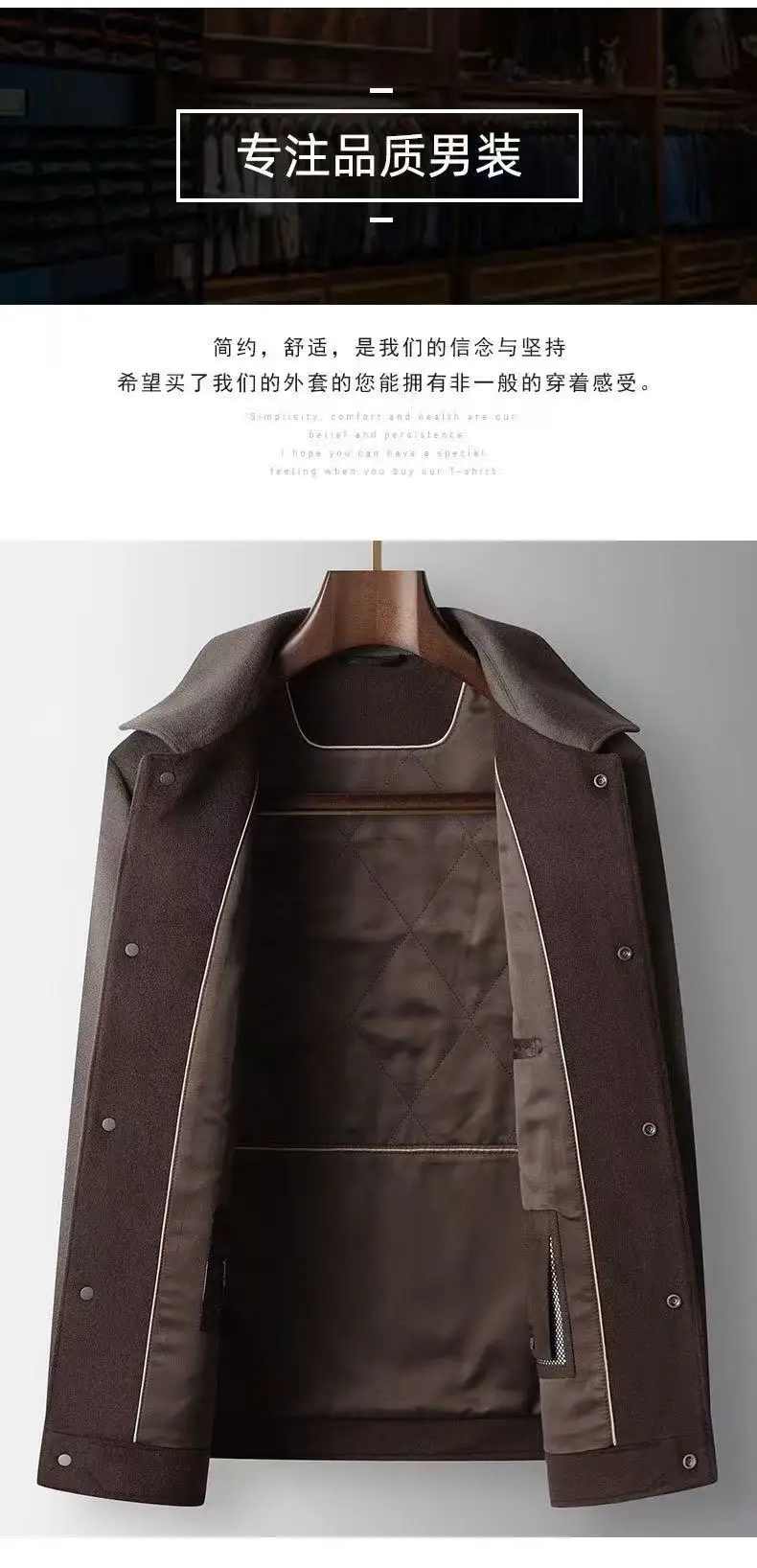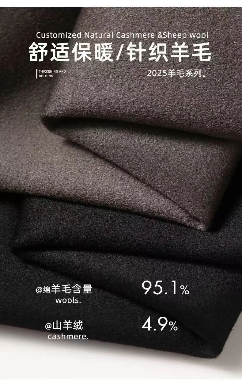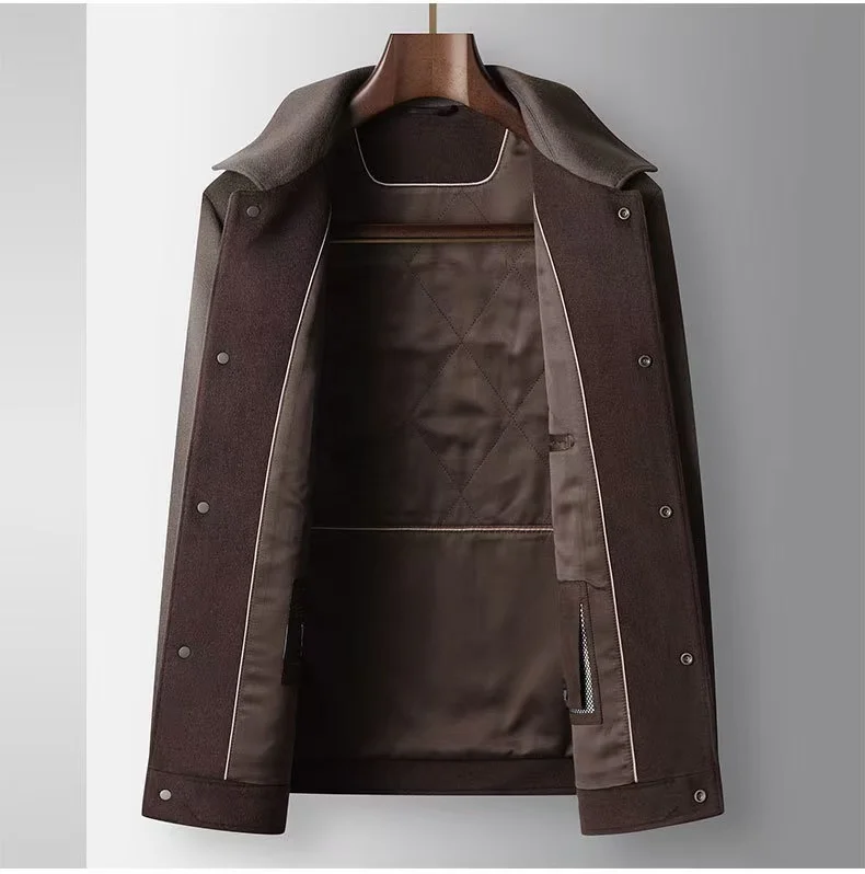 2025 Autumn/Winter New Men's Woolen Coat with 95% Wool Content, Cashmere Warmth, Light Luxury Business Leisure Woolen Coat