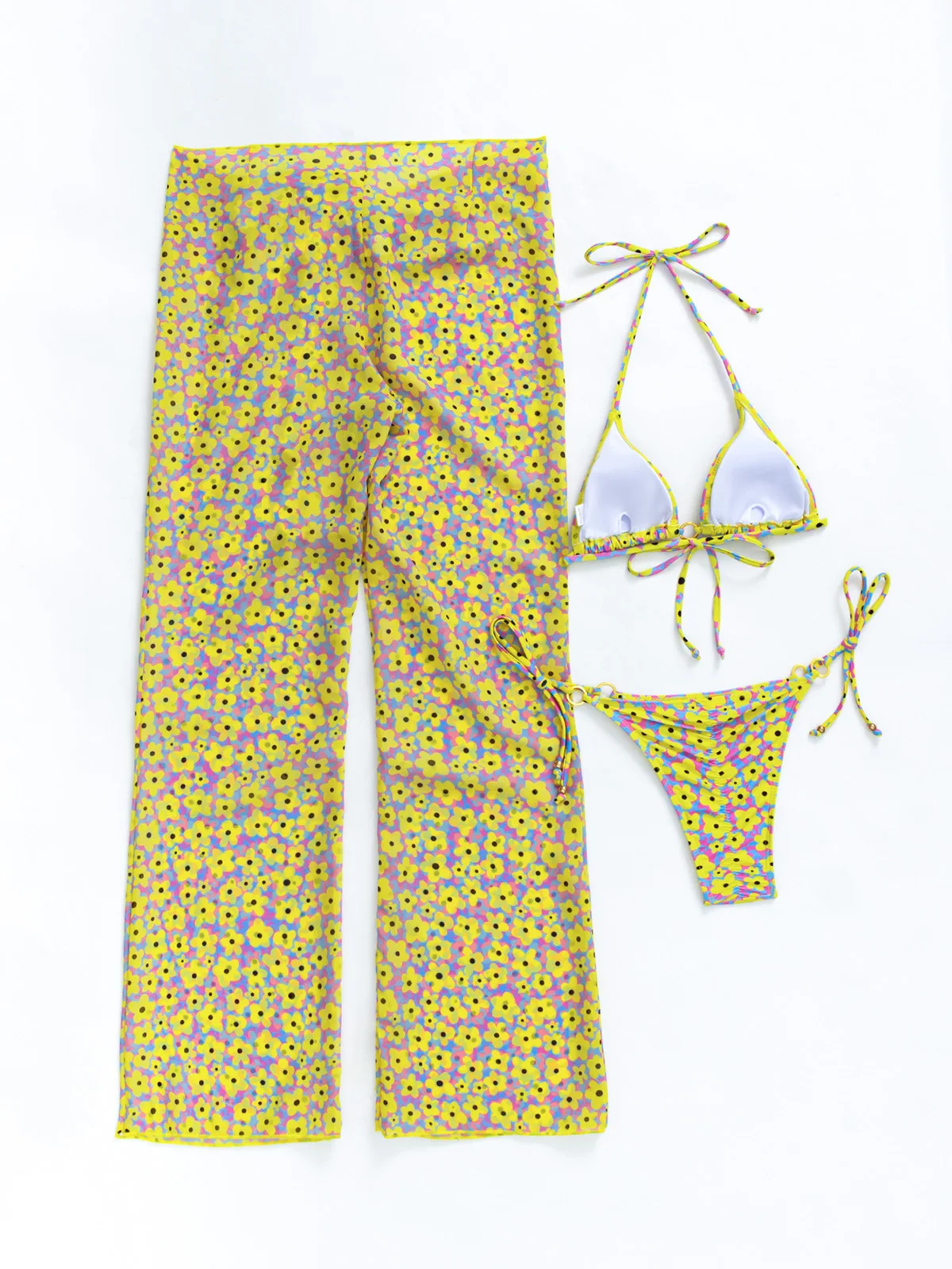 2025 Elegante conjunto de bikini negro con braguita transparente Estilo urbano Ropa de playa Pared blanca Ligero y transpirable Playa de verano