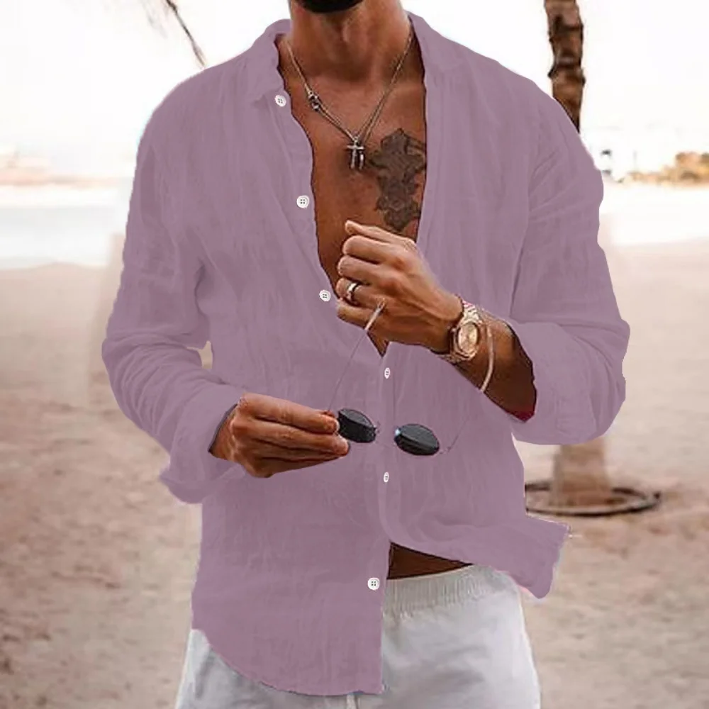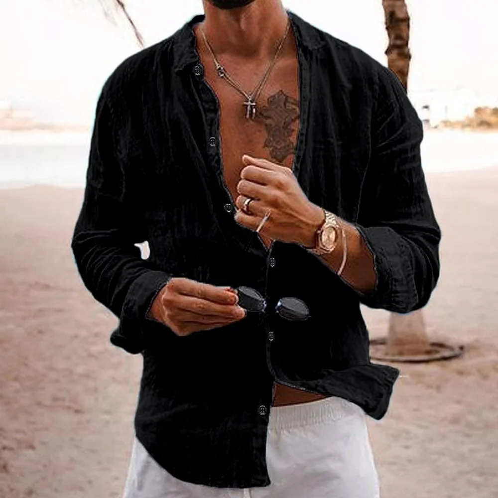 2025 Men's Cotton Linen Shirts Top Simple Laple Solid Man Shirts Tops Comfortable Loose Casual Holiday Shirts for Men Blouses