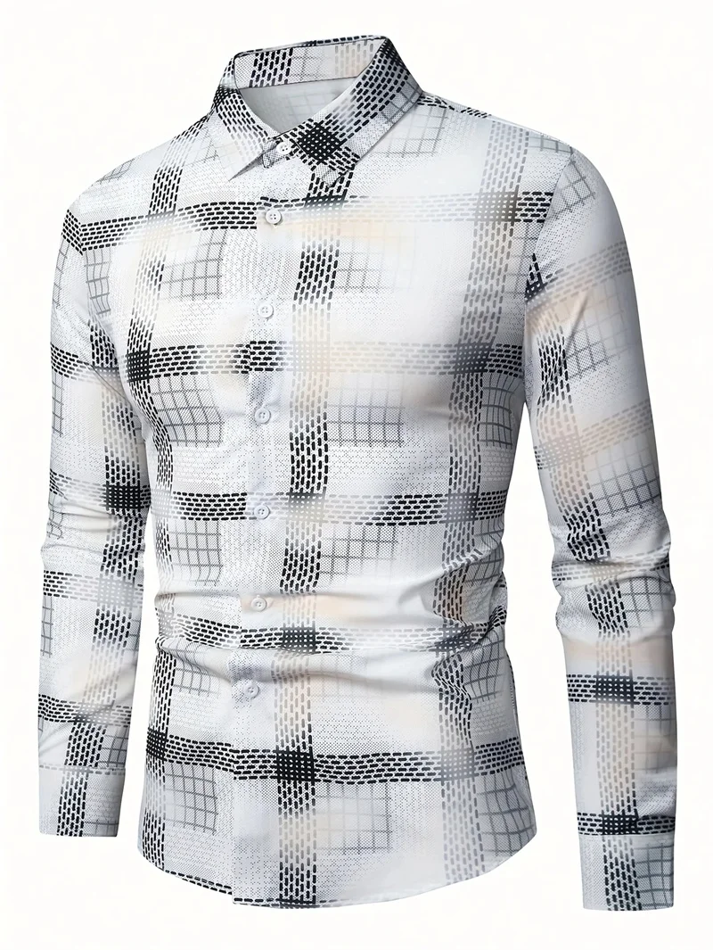 Camisa casual estampada para hombre 2025 con mangas largas transpirables y botones de plomo adecuada para primavera y otoño.
