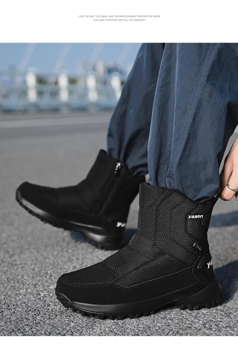 Botas de invierno para hombre 2025, botas de nieve para exteriores, cálidas, de felpa, gruesas, impermeables, antideslizantes, hasta media pantorrilla, zapatos de invierno para hombre
