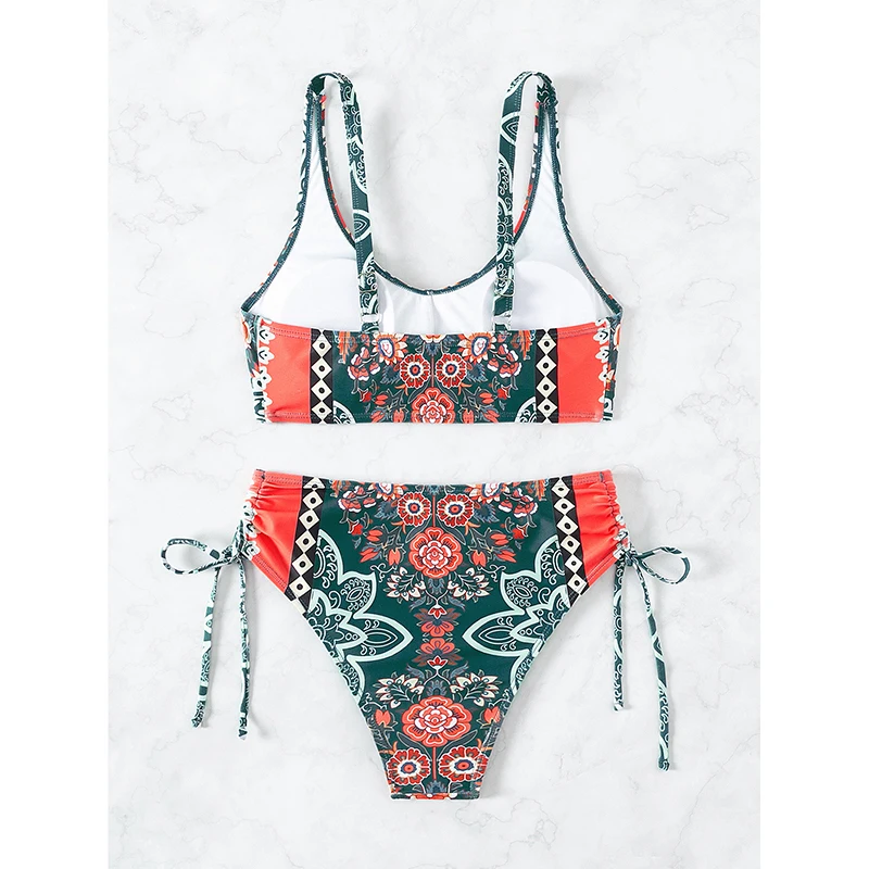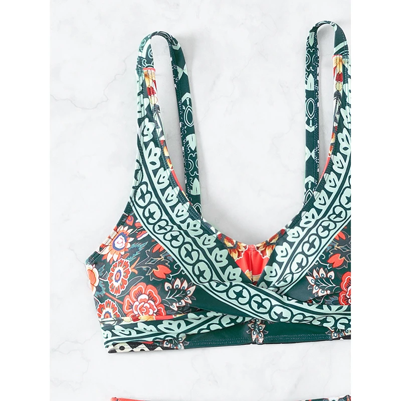 Conjunto de bikini para mujer, novedad de 2025, traje de baño de talla grande con efecto push up y estampado floral grande, ropa de playa.