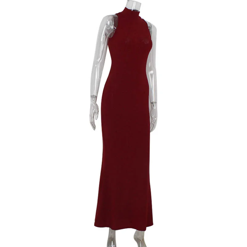 2025 New Women's Elegant Shiny Party Bodycon Robes Sexy Slim Sequins Red Sleeveless Long Dress Fashion Solid Maxi Gown Dresses