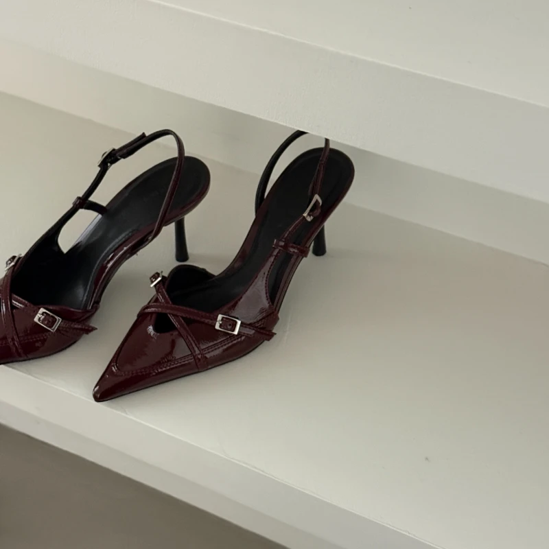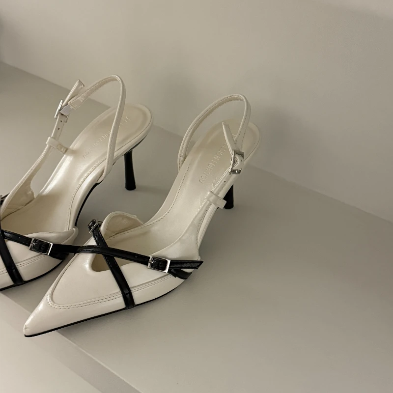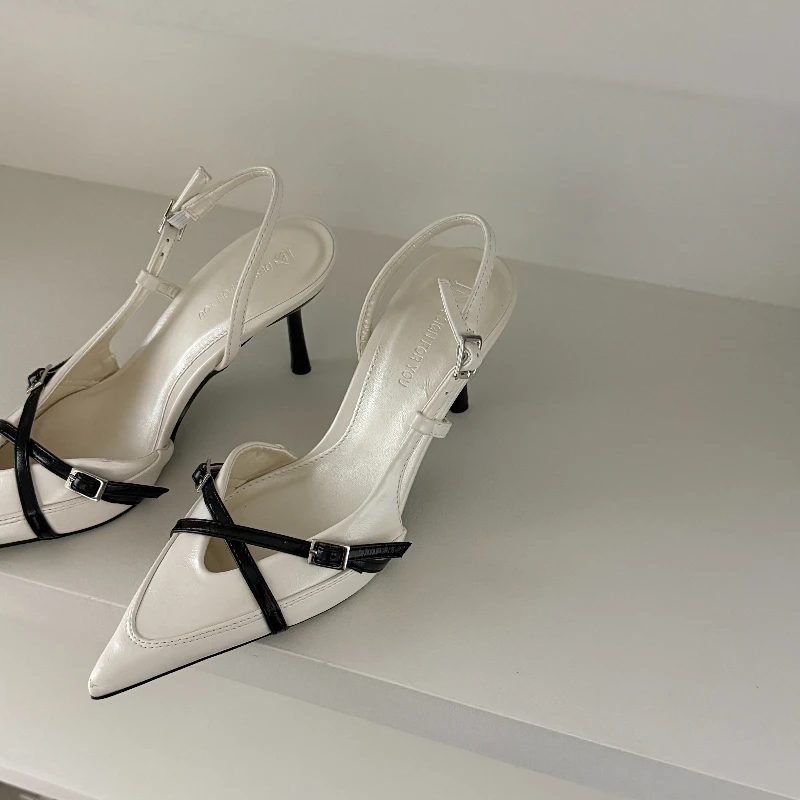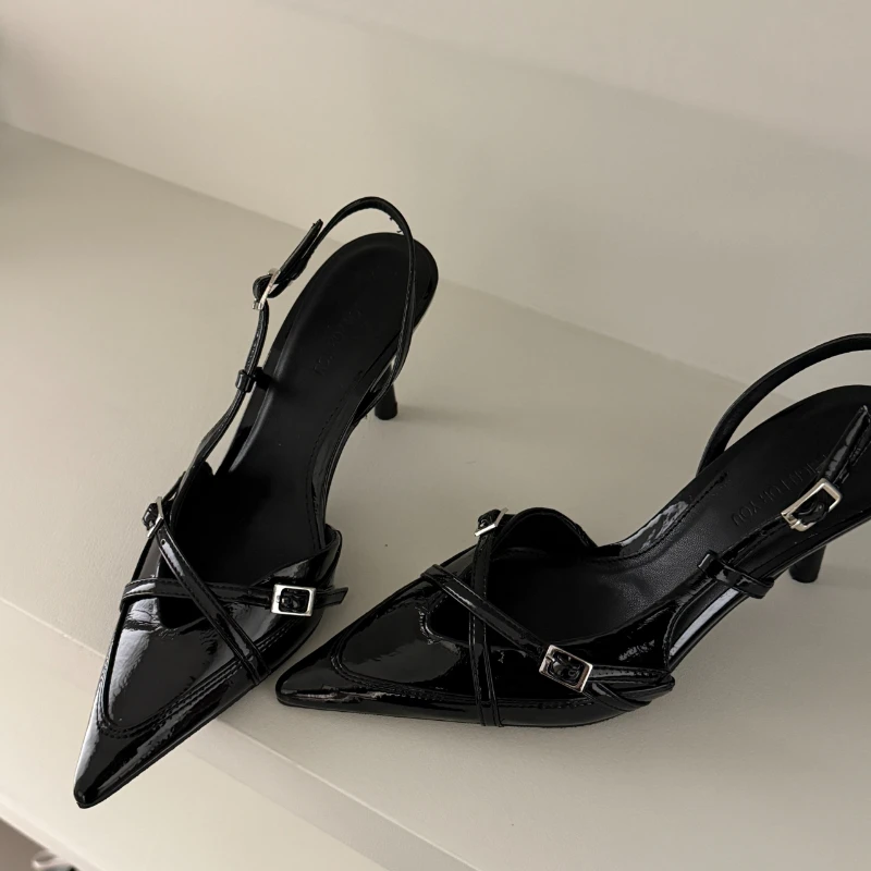 2025 New Women's Sandals Trendy Buckle Designer Summer Elegant Pointed Toe Pumps High Heels Outdoor Banquet Slingback Shoes