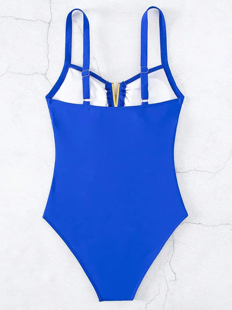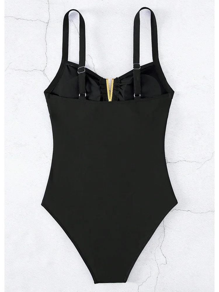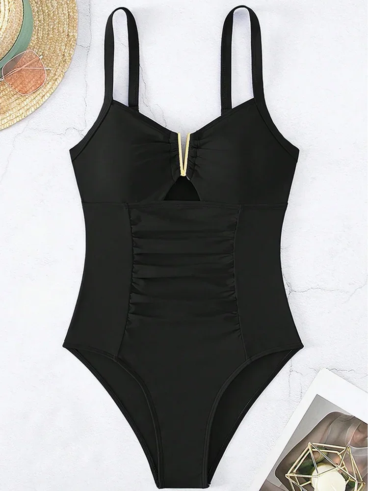 Trajes de baño plisados con cuello en V 2025 para mujer, traje de baño de una pieza para mujer, traje de baño de corte alto, traje de baño ajustado para playa.