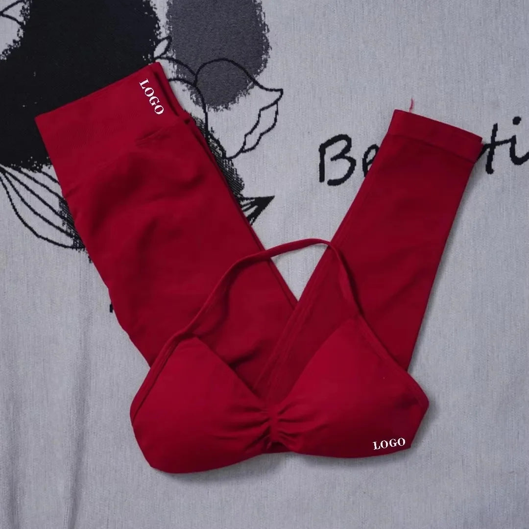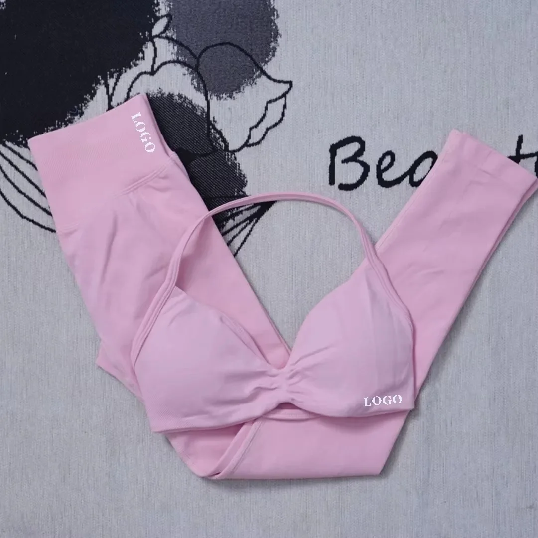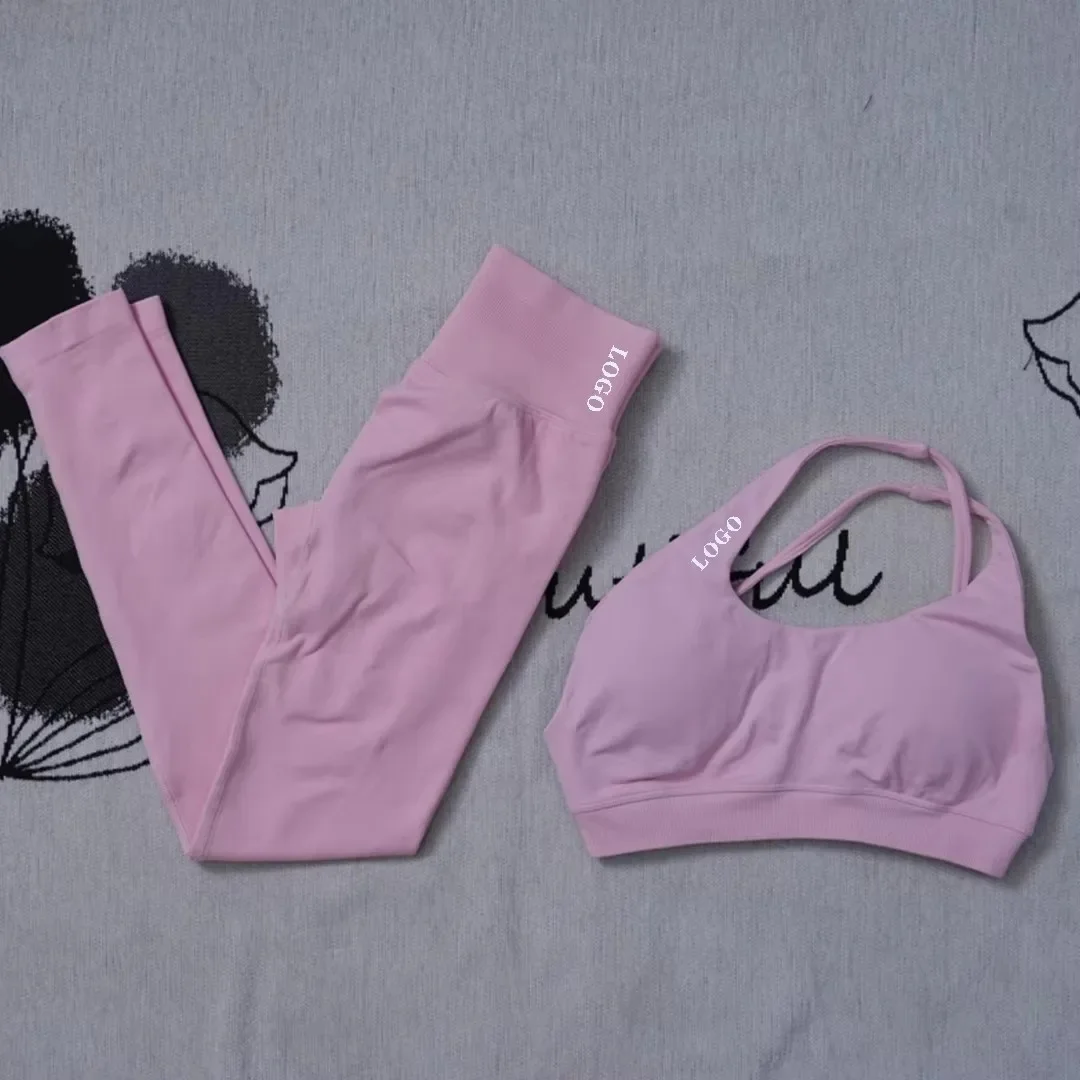 Conjunto de 2 piezas de yoga para mujer, leggings de cintura alta sin costuras, sujetador deportivo, ropa de entrenamiento, ropa deportiva para correr