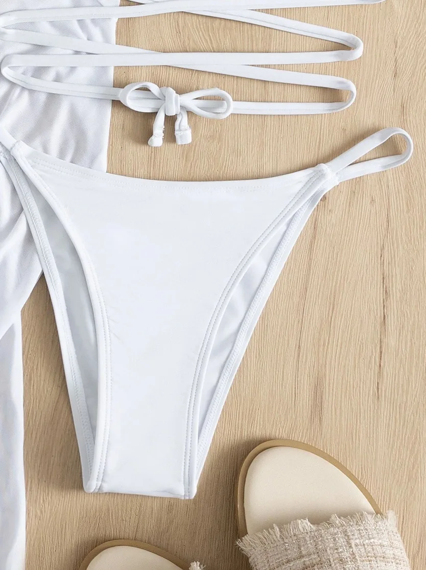 4 Piece Swimming Suit Women Beach Wear Solid Tassel Cover Up Mesh Mini Skirt Bikinis Set Cute Swimming Pool Outfit Summer