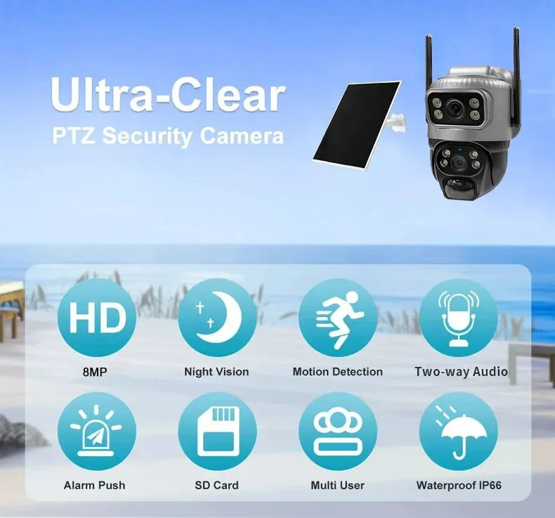 1. Cámara de vigilancia 4G 4K de 8MP con panel solar y tarjeta SIM integrada, 300M de datos gratis durante los primeros 7 días.