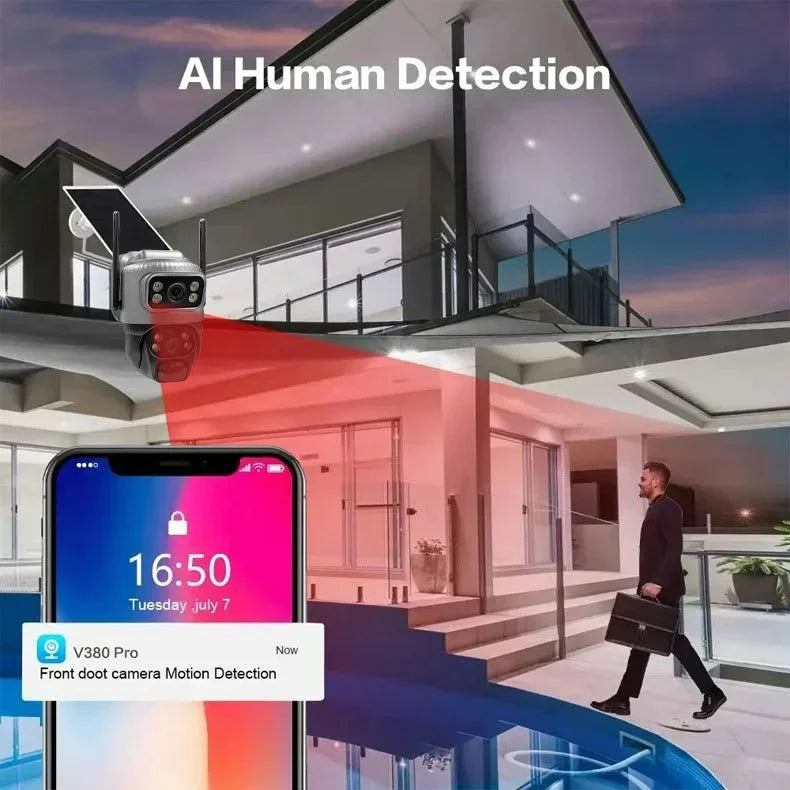 11. Detección de movimiento y seguimiento automático: Tras fijar el objetivo, la cámara ajustará automáticamente la rotación horizontal y vertical. Rastrea objetos en movimiento, coches, mascotas, personas y envía notificaciones de alerta.