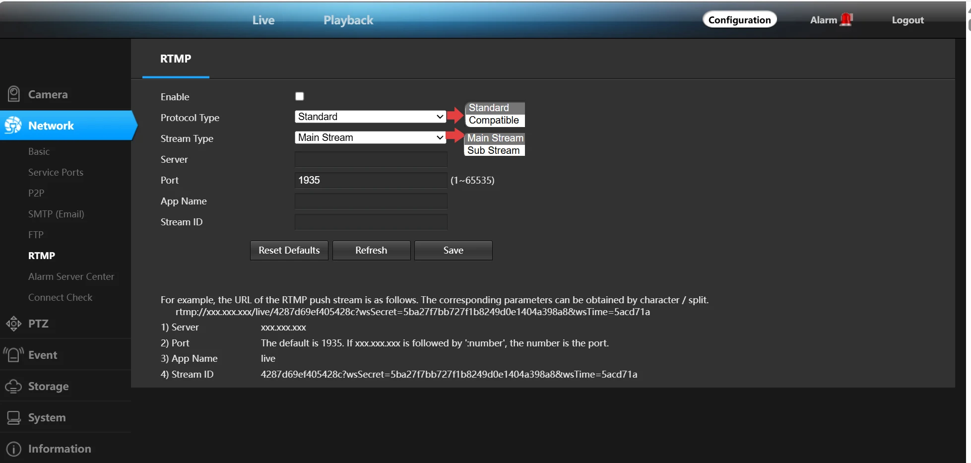 El formato de URL RTSP para las cámaras de la serie AJ es el siguiente (suponiendo que la IP del IPC sea 192.168.0.123):