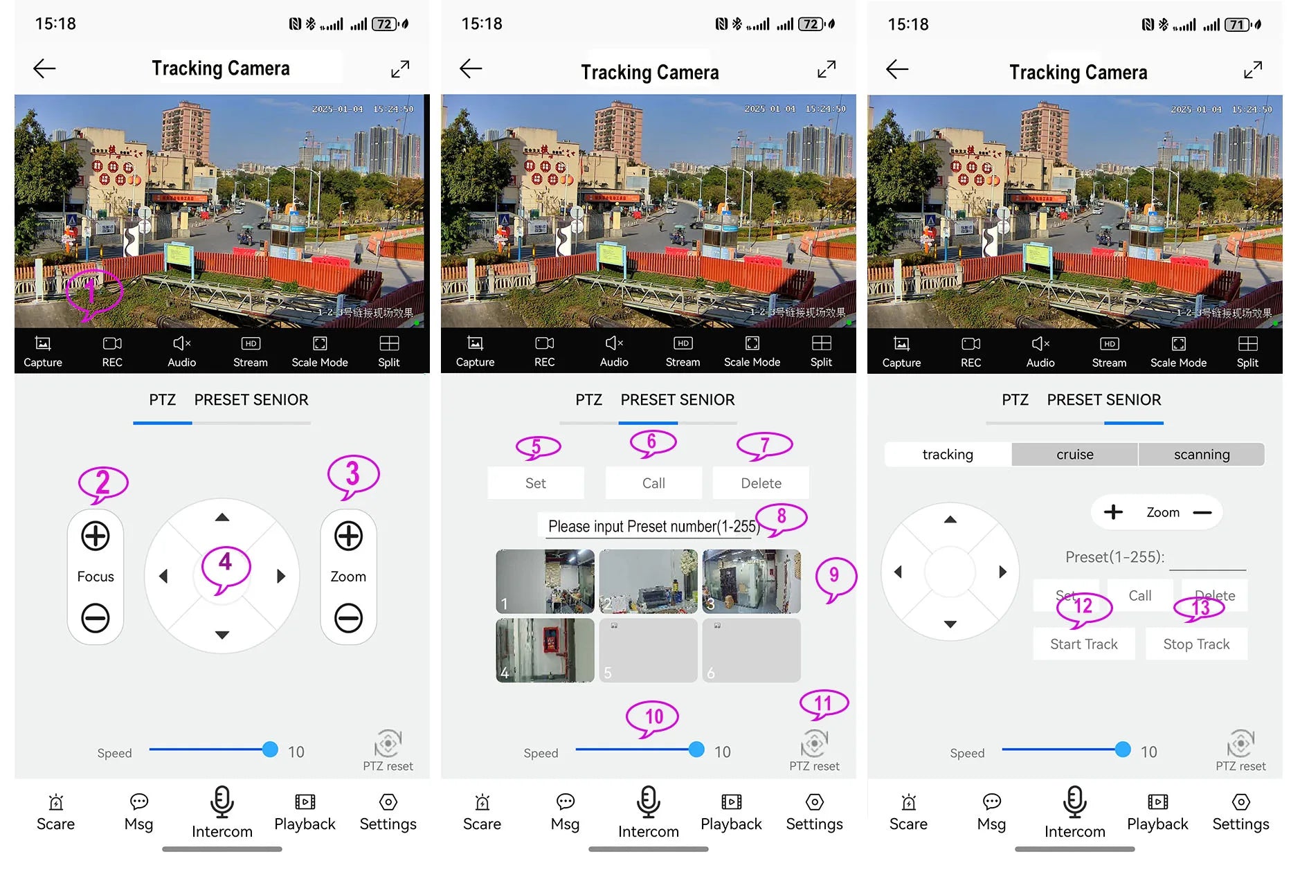 10: Ajuste la velocidad de control de rotación de la cámara;