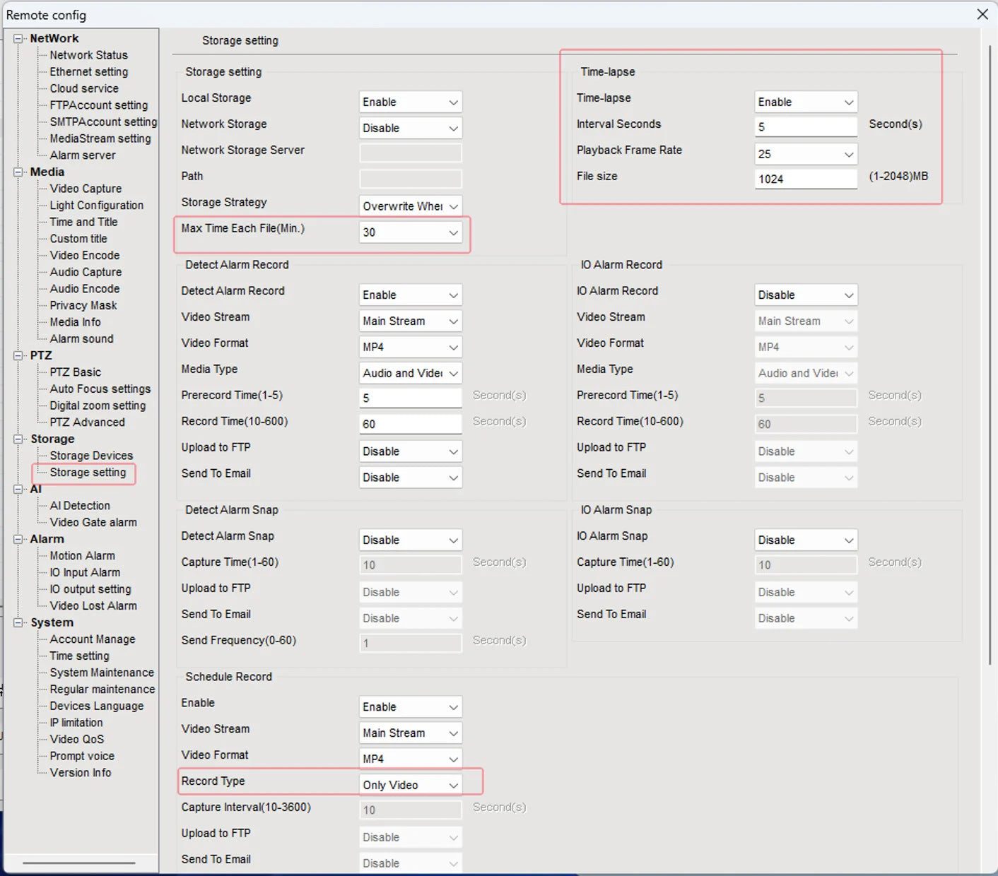 Admite la personalización del tiempo de grabación de la alarma; se puede configurar de 20 segundos a 10 minutos.