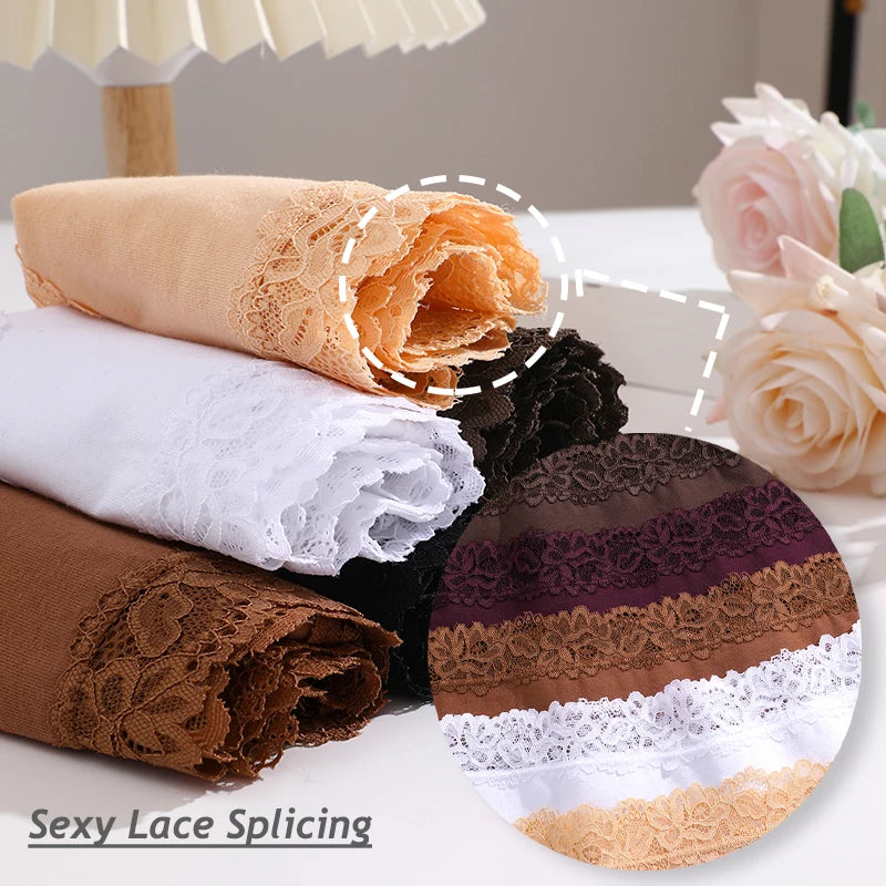 Conjunto de 4 bragas de algodón para mujer, lencería sexy brasileña sin costuras con encaje floral, de tiro bajo, transpirables