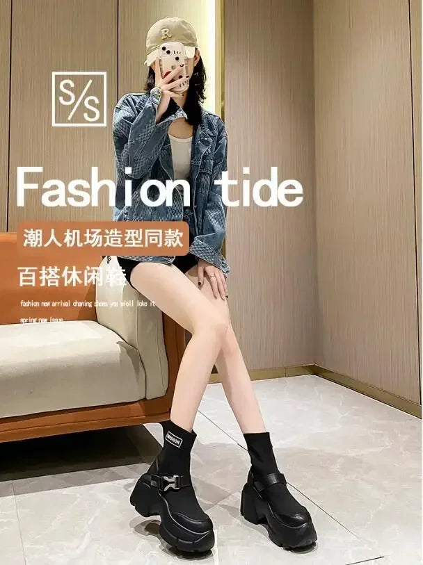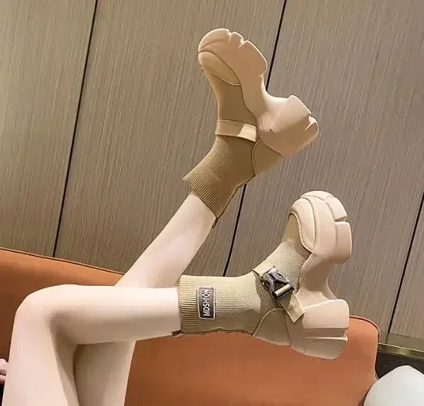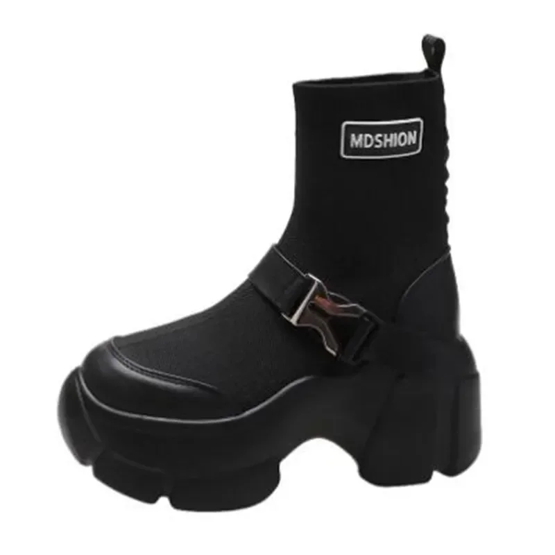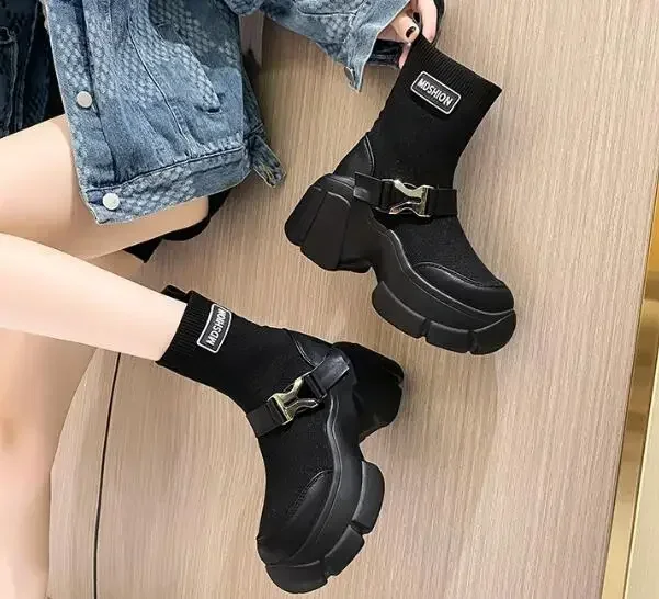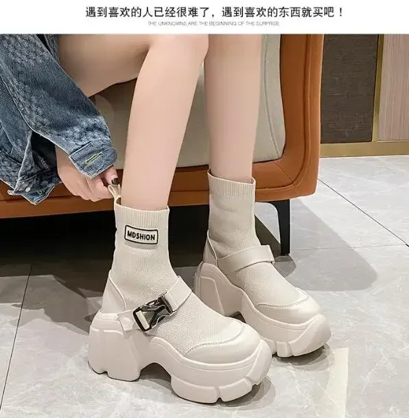 Botines de plataforma alta de 8 cm para mujer, botas cortas con suela gruesa y suela gruesa, antideslizantes, para motocicleta, para otoño