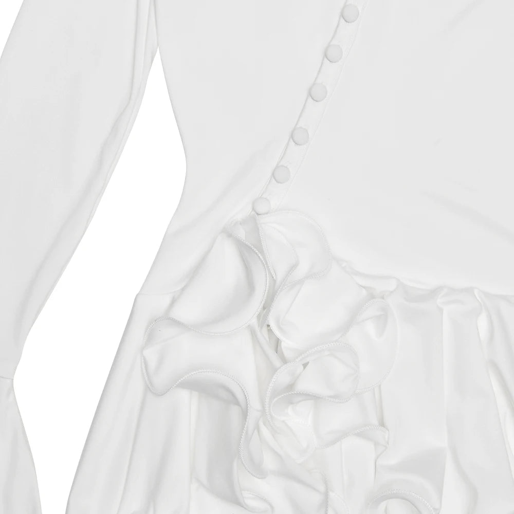 Absobe Women's A-Line Bodycon Mini Dress Ruffle Hem V-Neck Asymmetrical Buttons Long Sleeve Short Dress Party Streetwear Outfits