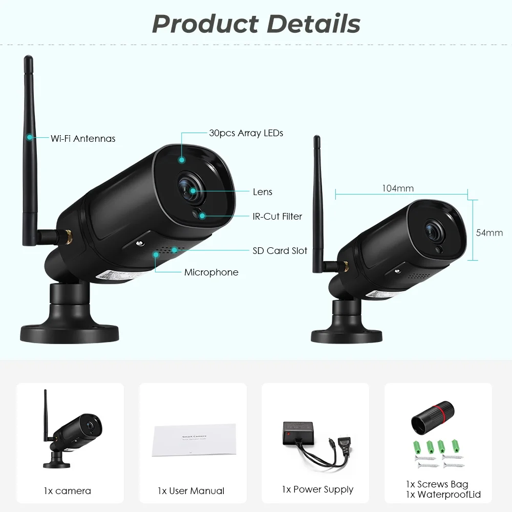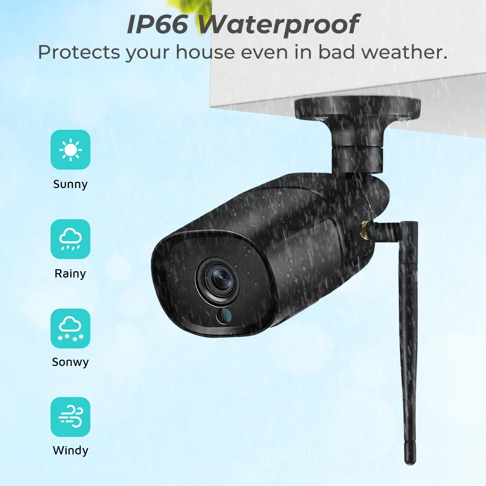 Esta cámara de vigilancia doméstica inteligente con wifi es una cámara IP66 de metal resistente, diseñada para funcionar en condiciones ambientales extremas en exteriores. Puede usarse al aire libre y soporta cualquier tipo de viento y lluvia.