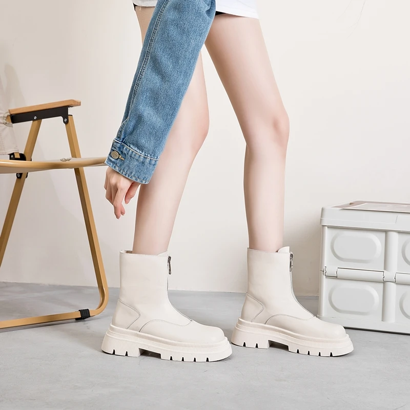 AIYUQI Women Chelsea Boots Genuine Leather 2025 New Warm Winter Boots Women Non Slip British Style Front Zipper Women Booties