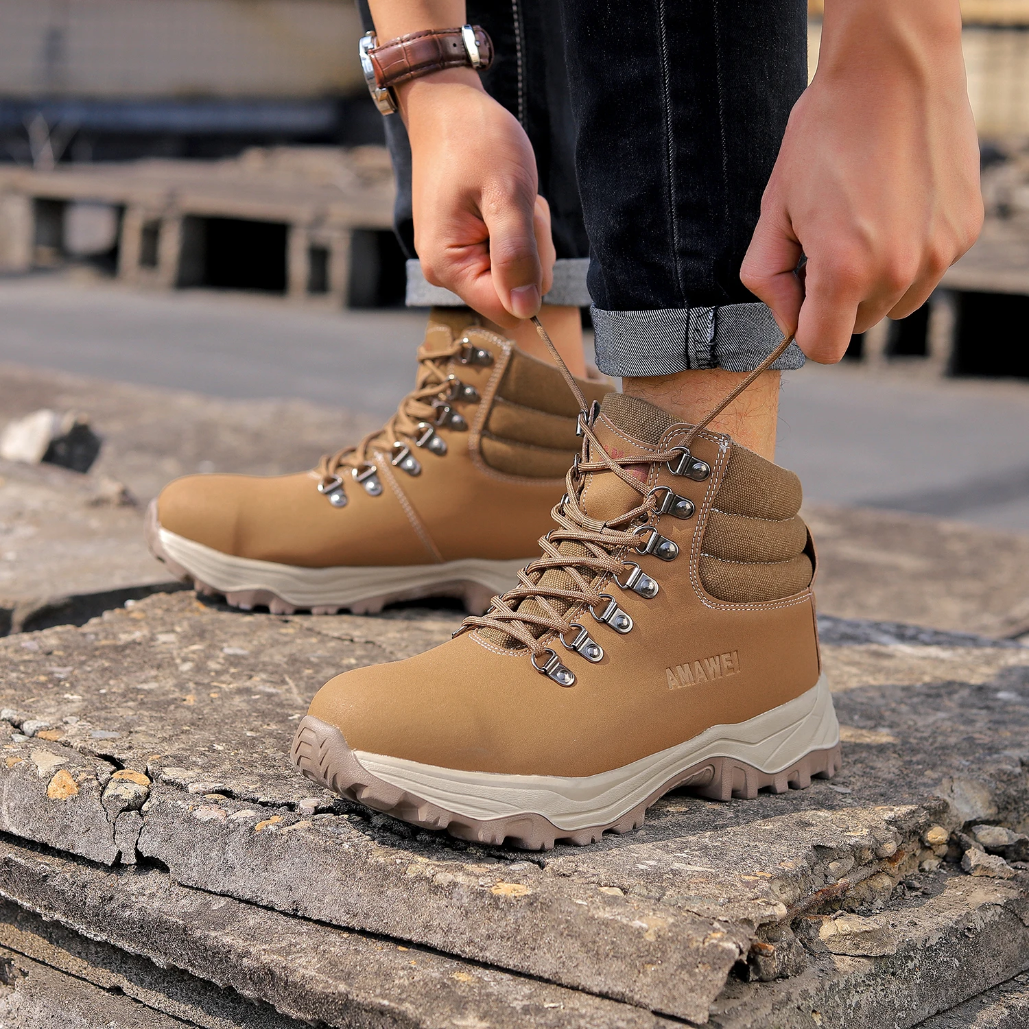 Anti-Smash Steel Toe Work Boots Mens Protection Shoes Breathable Non-Slip Anti-Puncture Construction Work Shoes Hiking Boots
