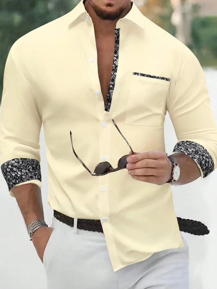 Autumn Quality Men's Long Sleeve Shirt Lapel Business Casual Pocket Shirt Style Office Shirt