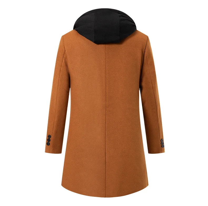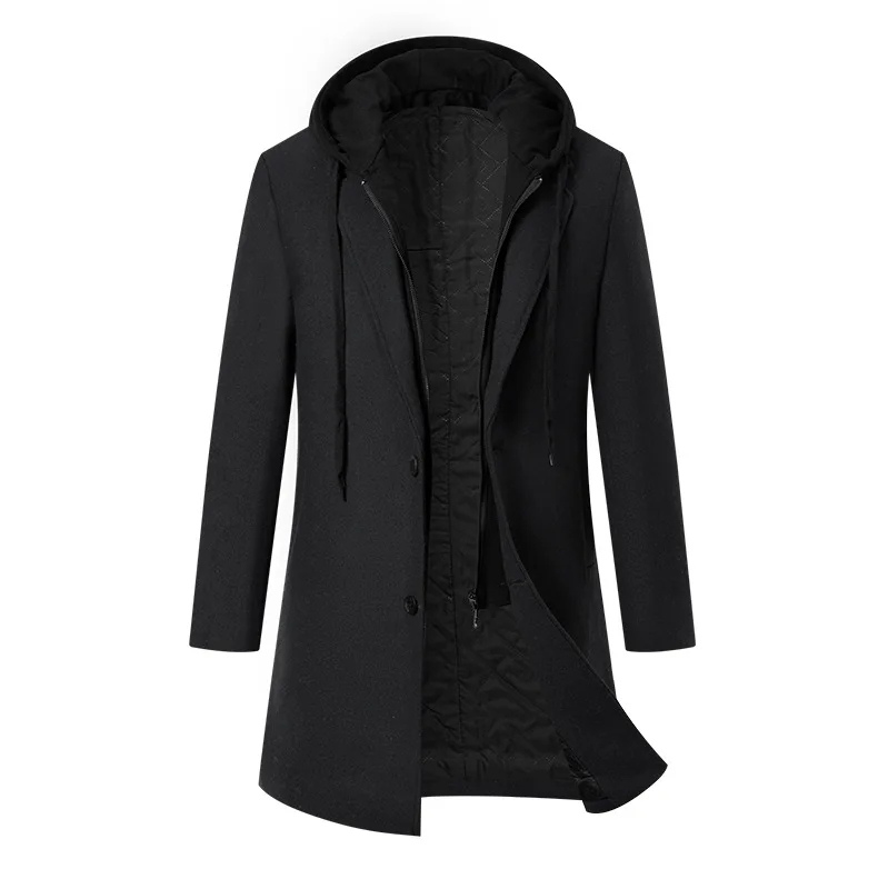 Autumn Winter Men's Wool Trench Coat Fashion Hooded Warm Long Woollen Coats Business Casual Turn Down Collar Woolen Blend Men