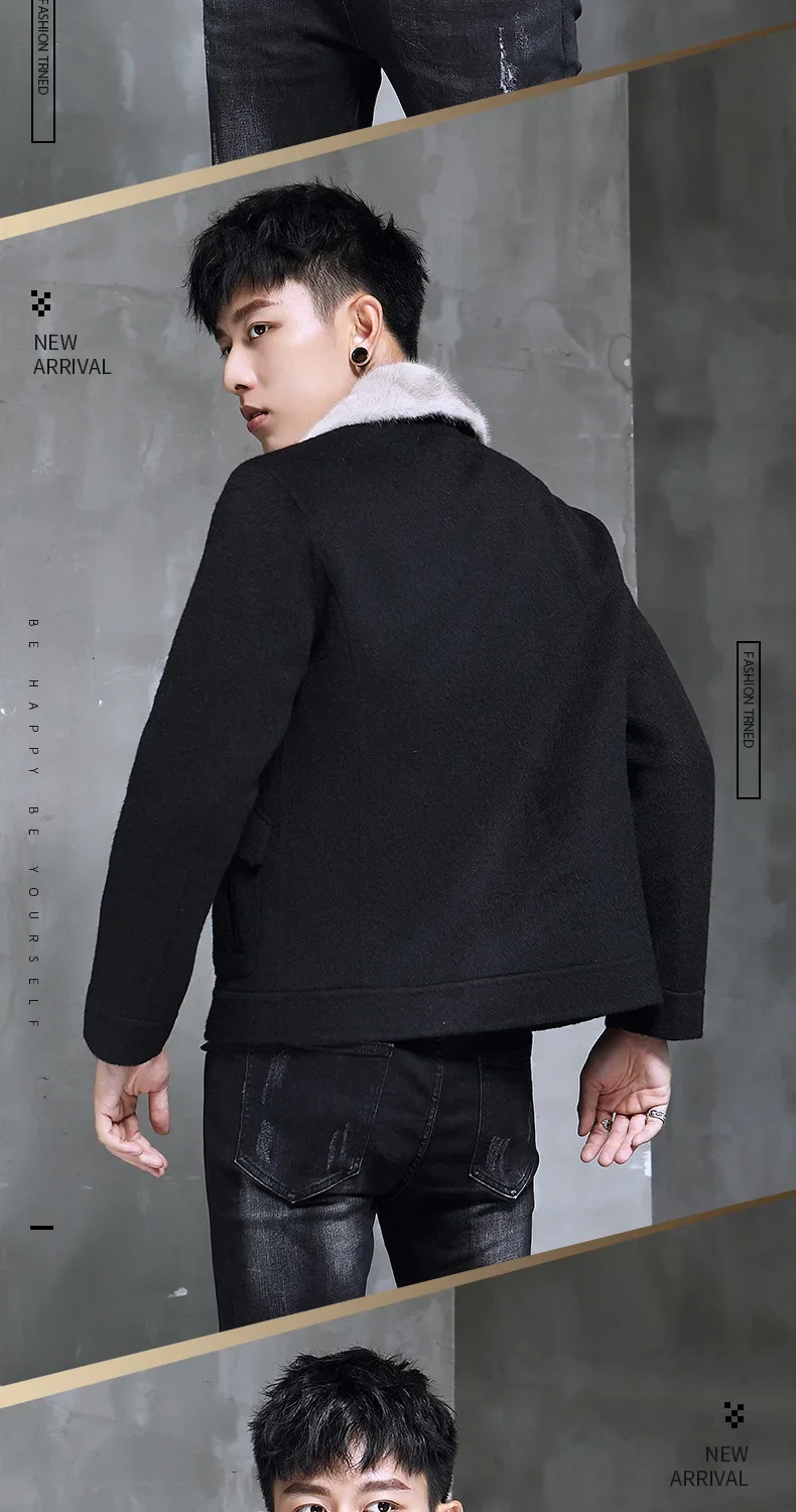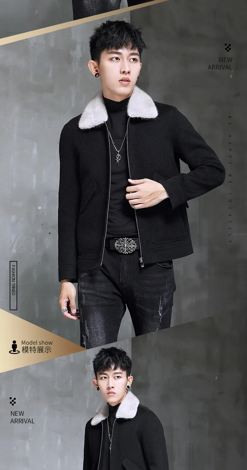 AYUNSUE Spring Autumn Wool Coat Men Double-sided Alpaca Jacket Mink Fur Collar Mens Coats and Jackets Overcoat 1970B KJ3859