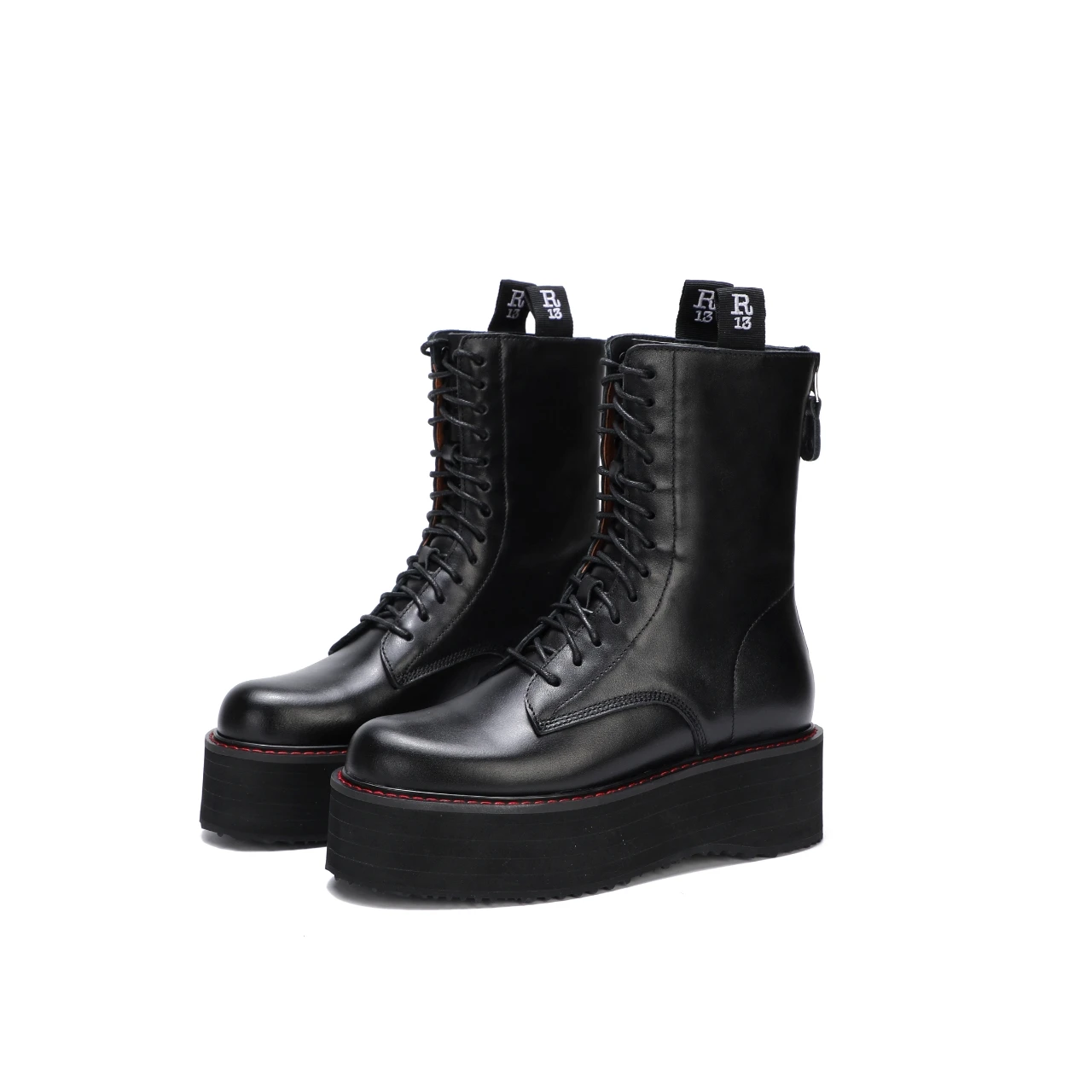 Botas de mujer de nuevo estilo con suela gruesa y cremallera trasera con cordones ajustables