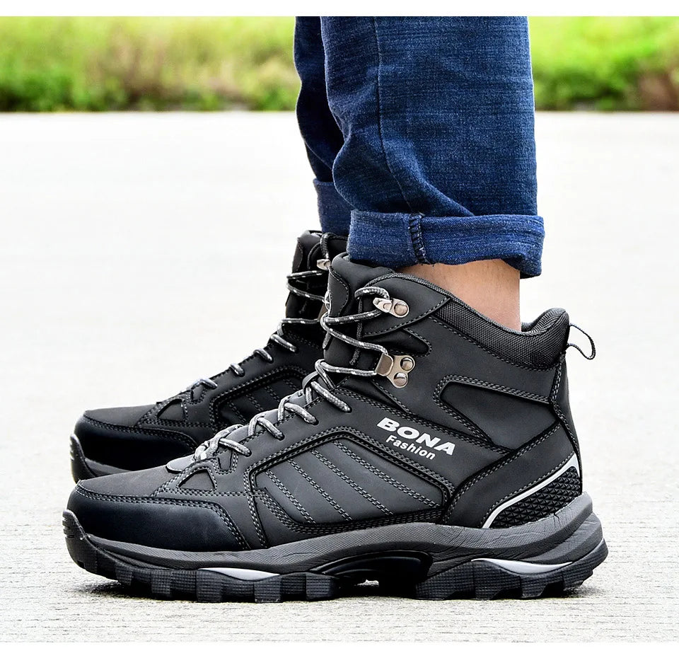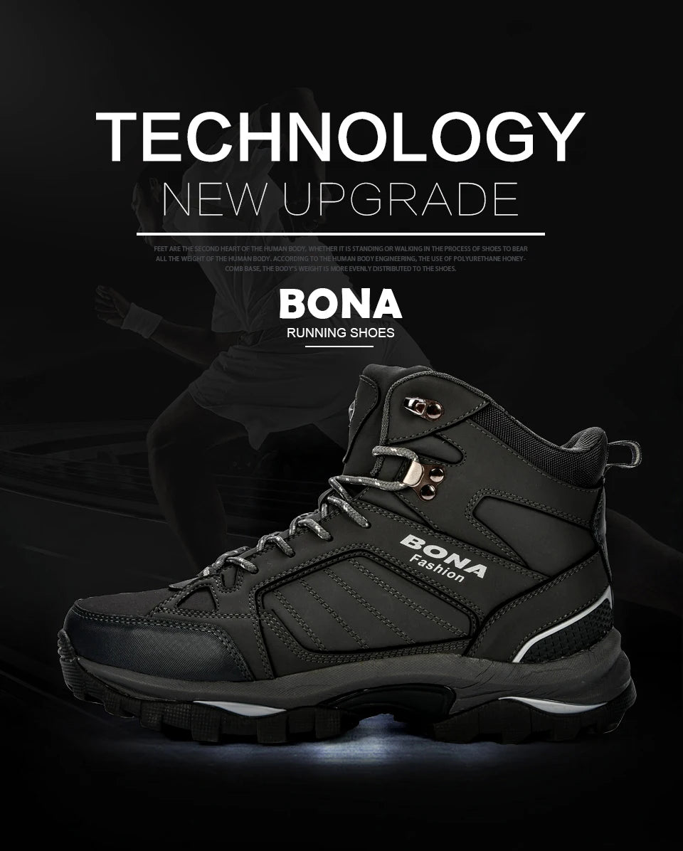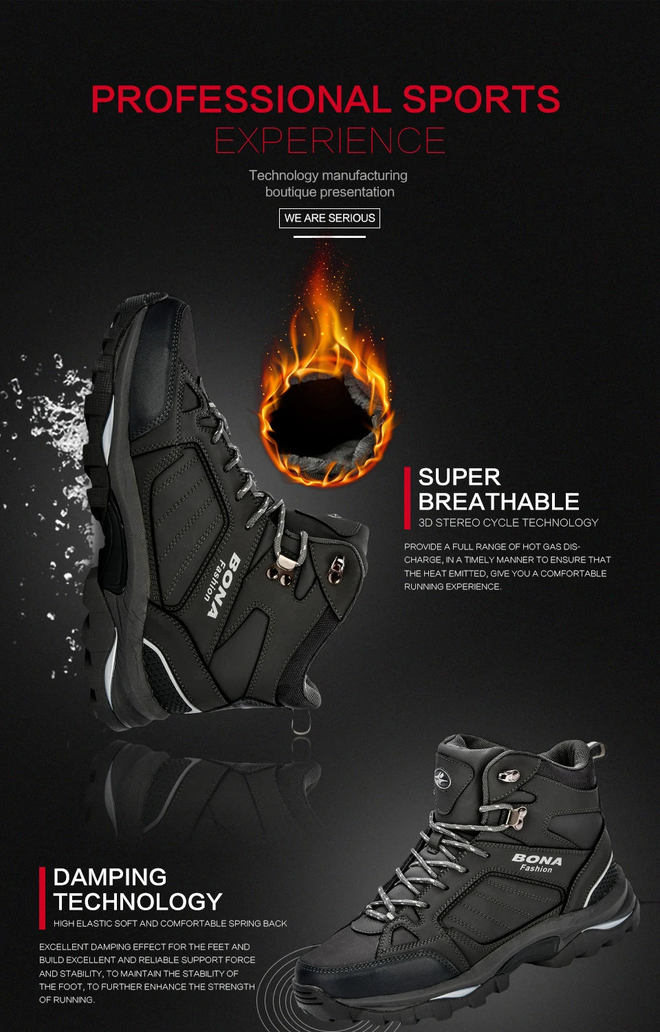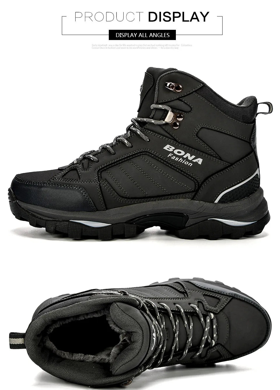 BONA 2023 New Designers Winter Suede High Top Boots Men Warm Plush Snow Boots Man High Quality Anti-Slip Hiking Boots Mansculino