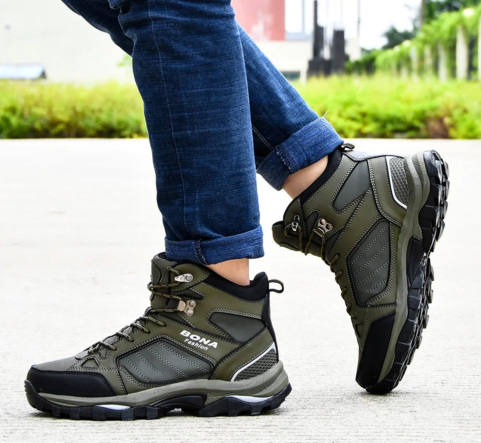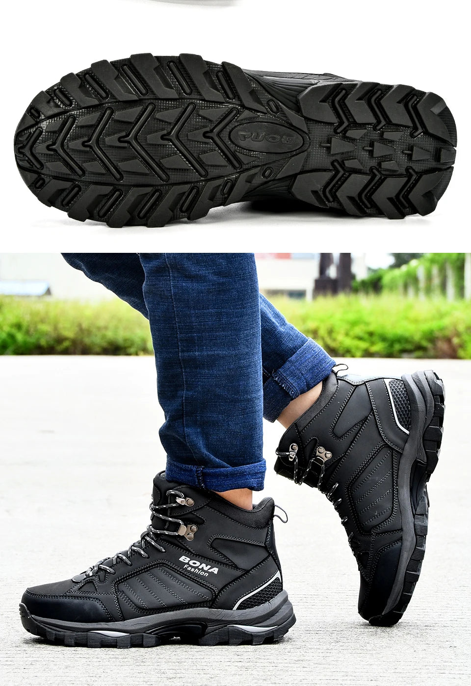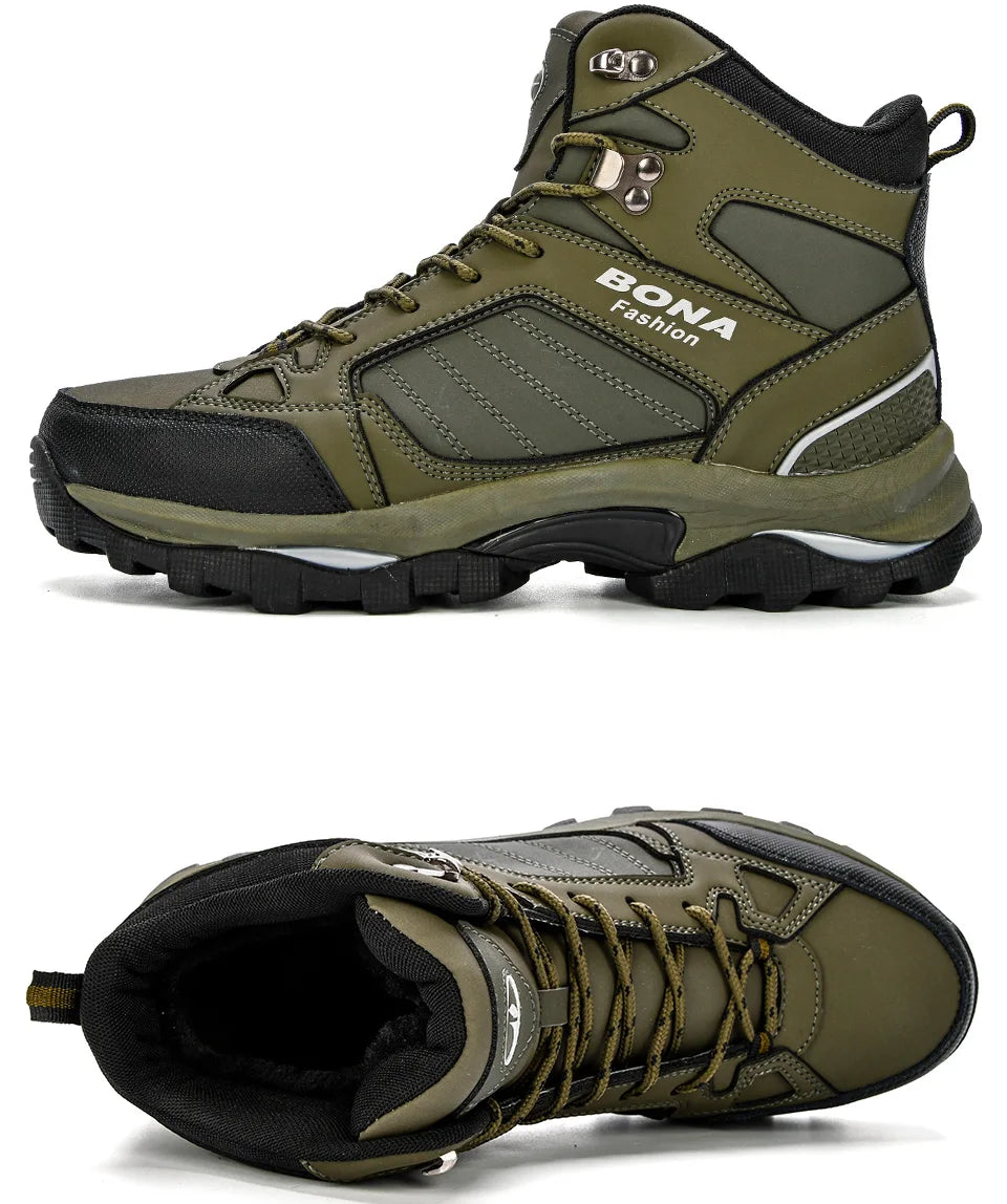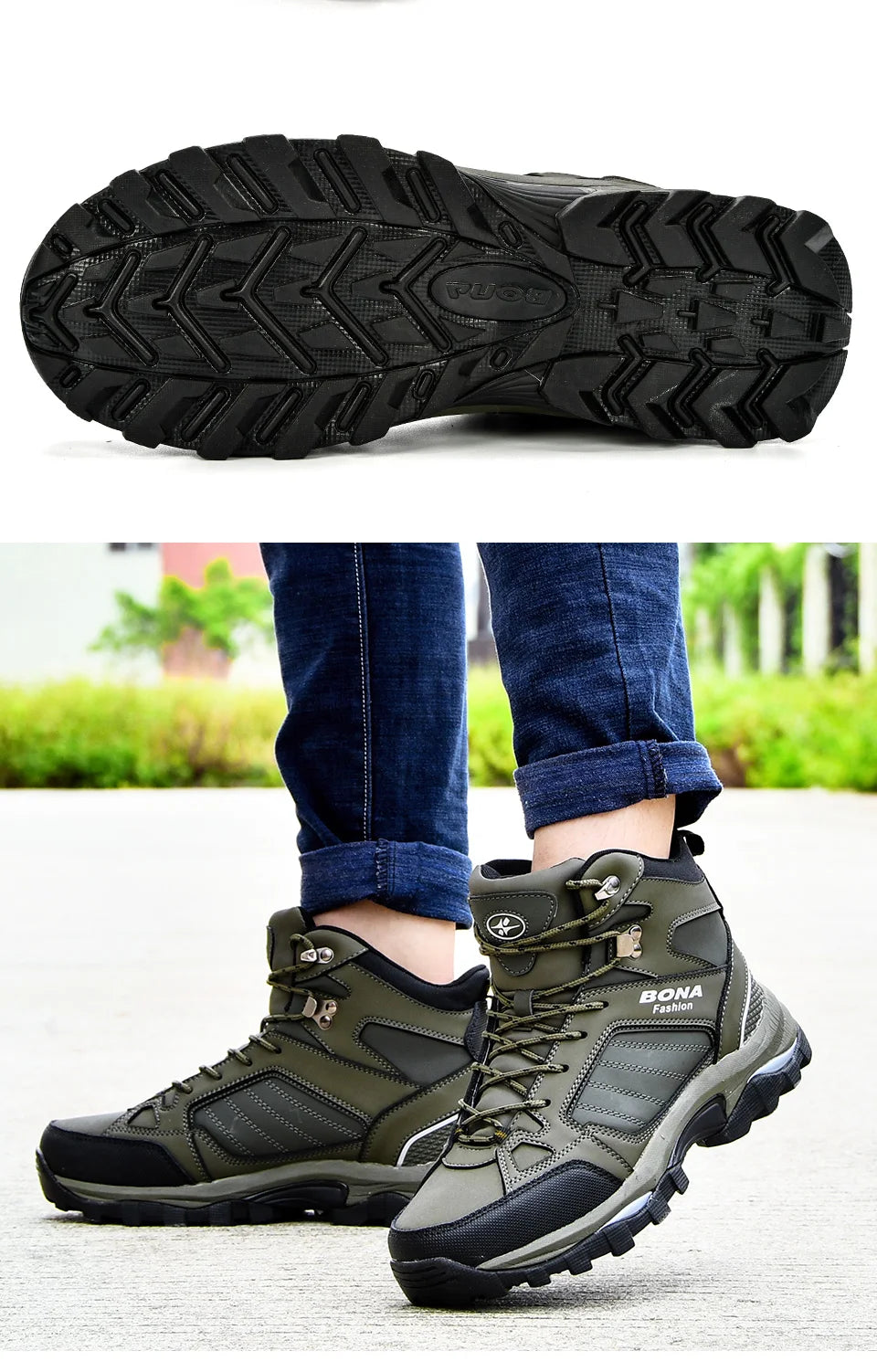 BONA 2023 New Designers Winter Suede High Top Boots Men Warm Plush Snow Boots Man High Quality Anti-Slip Hiking Boots Mansculino