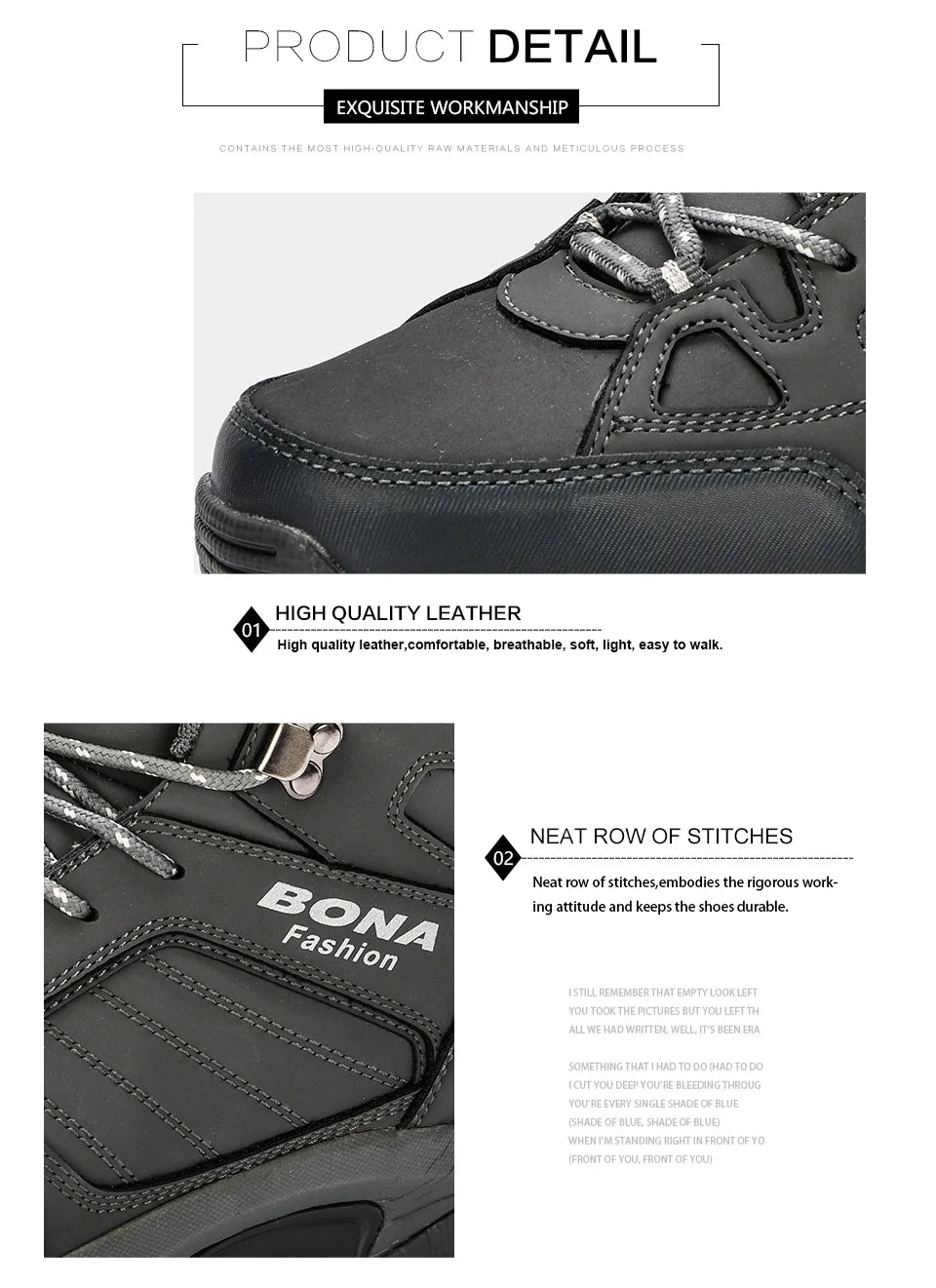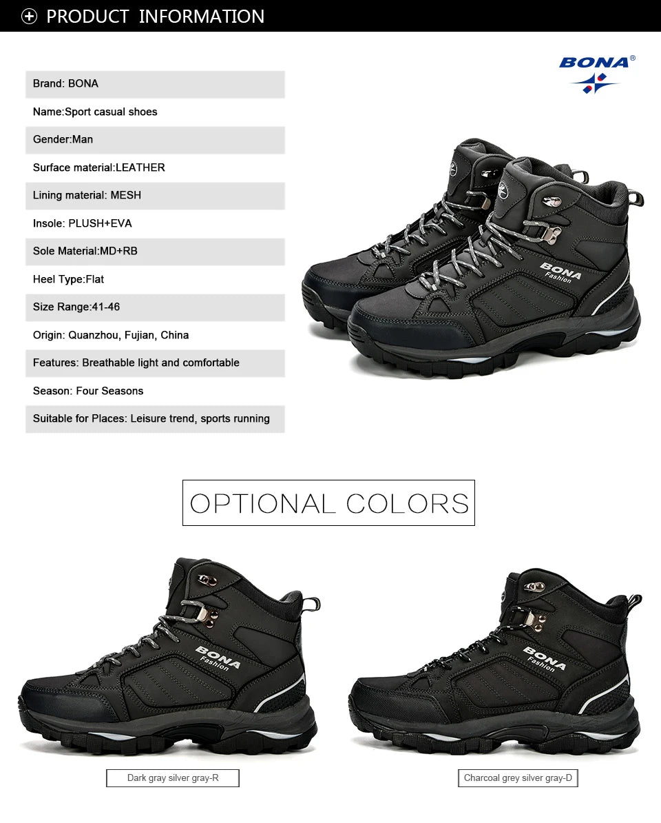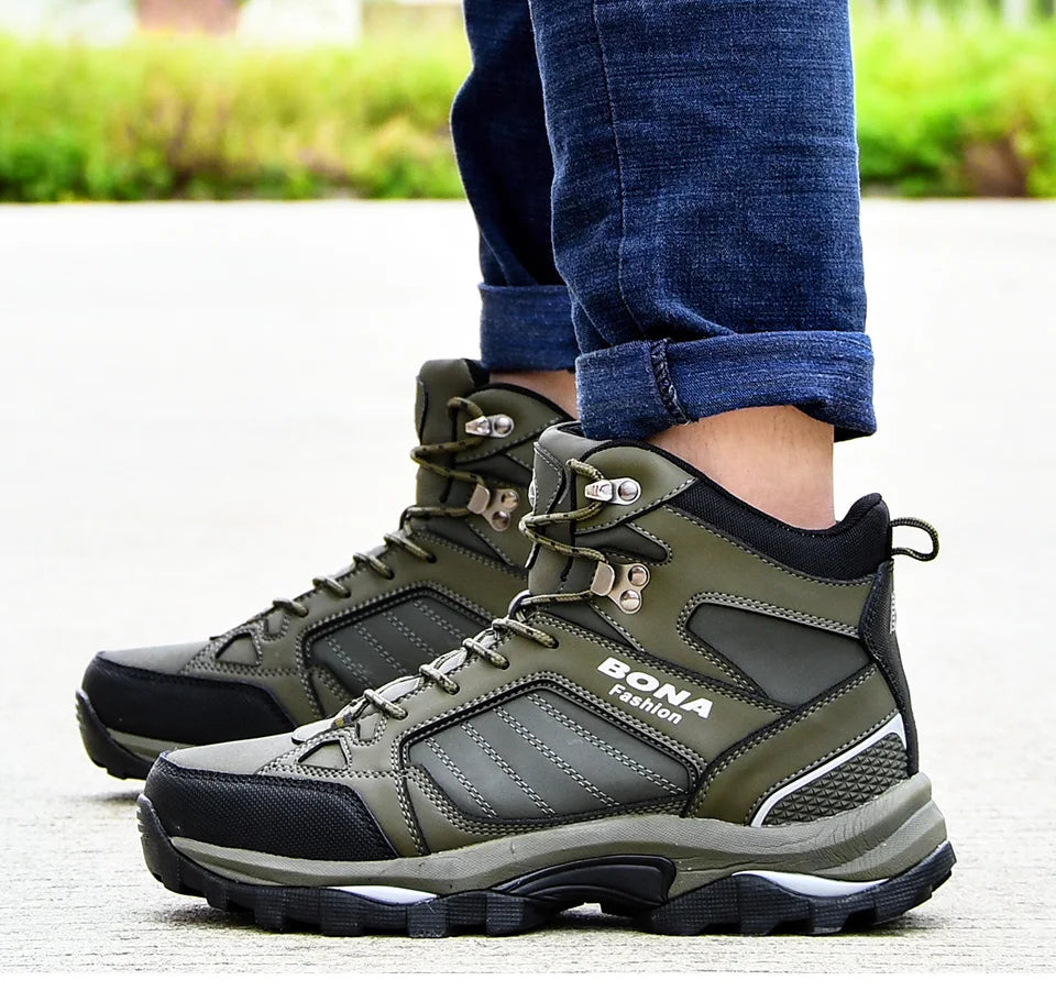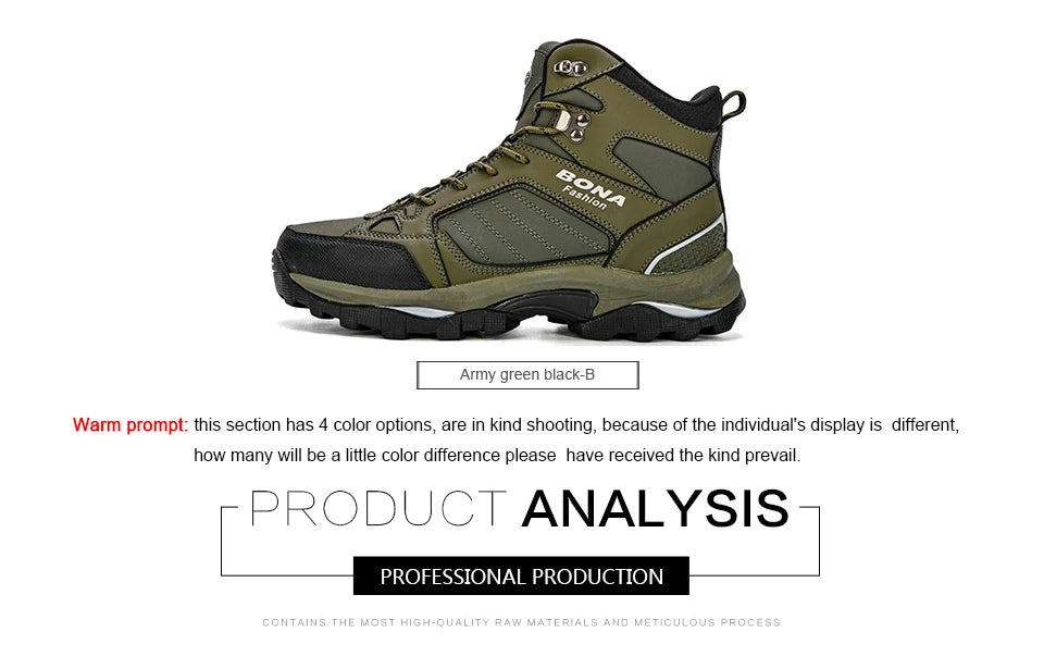 BONA 2023 New Designers Winter Suede High Top Boots Men Warm Plush Snow Boots Man High Quality Anti-Slip Hiking Boots Mansculino