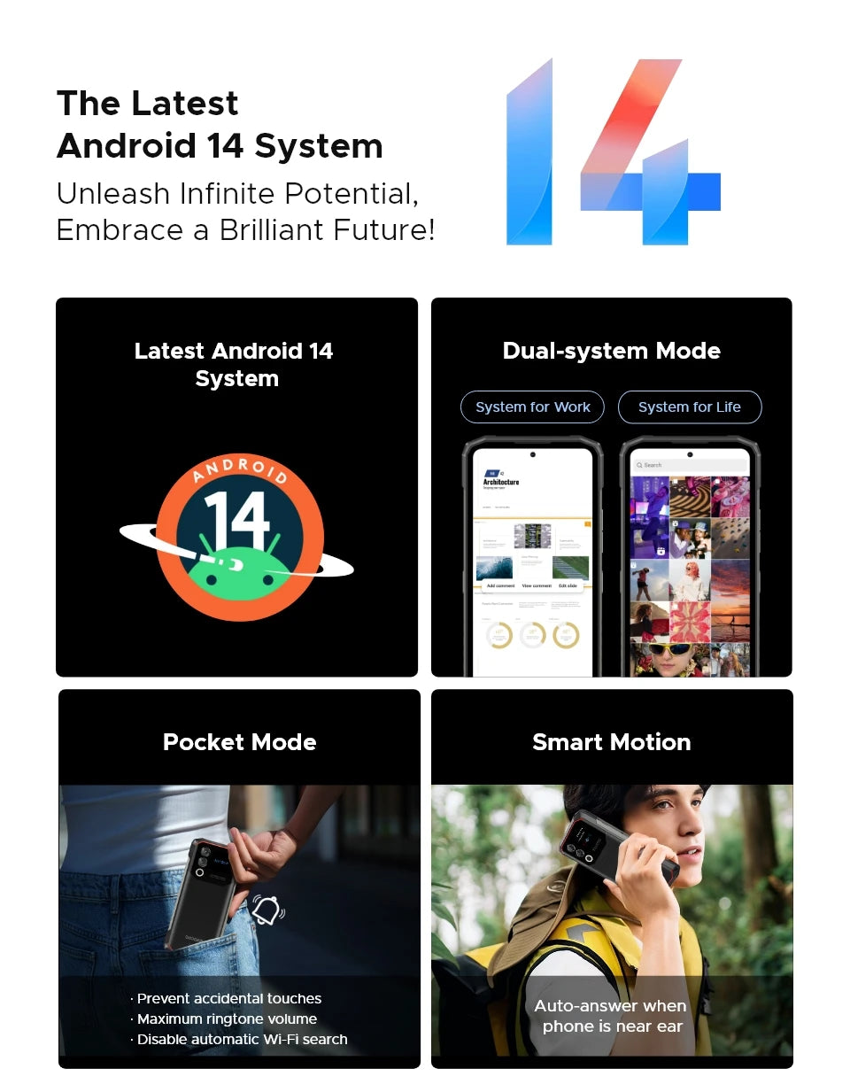 DOOGEE Blade10 Max Versión Global Teléfono Resistente 8GB +256GB Pantalla de 6.56" Cámara Principal con IA de 50MP Pantalla Trasera 10300mAh Android 14 NFC