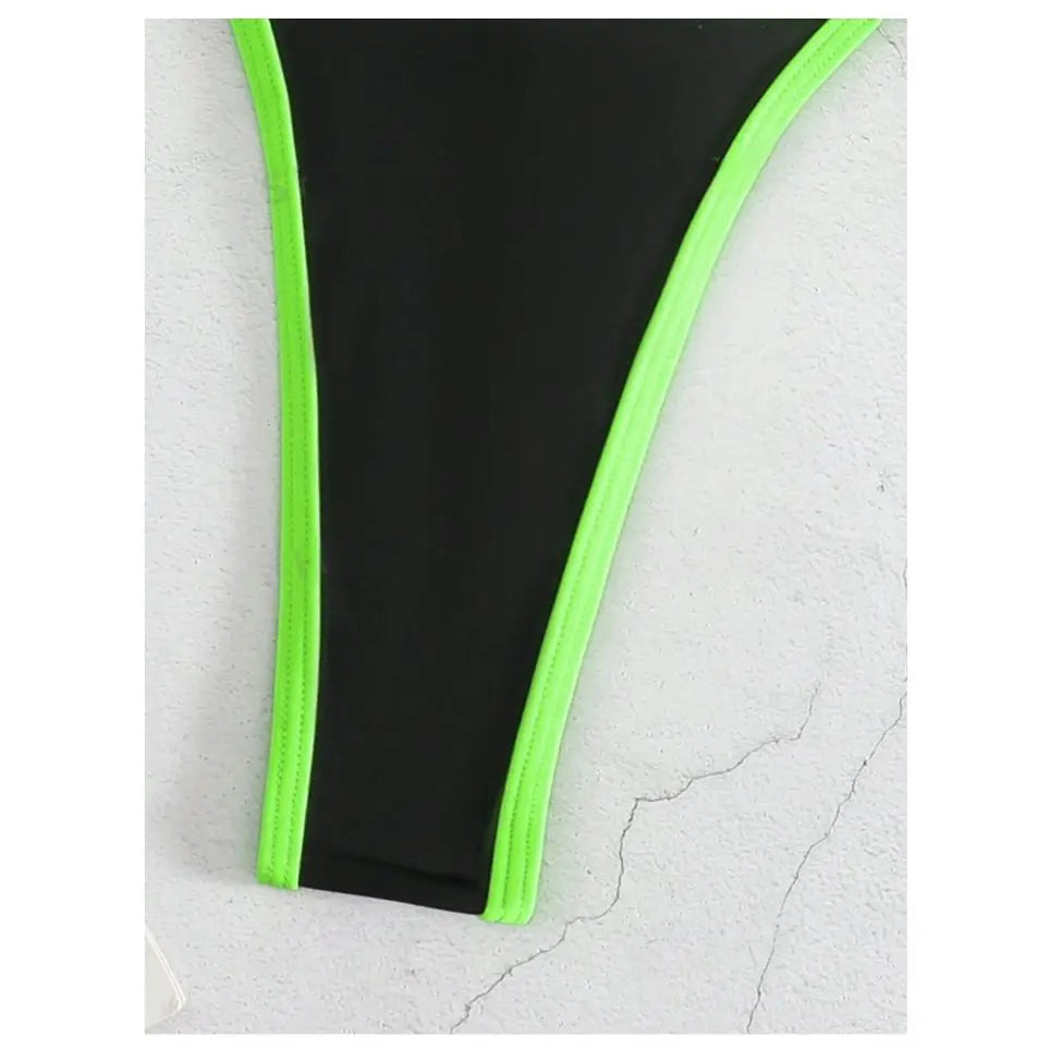 Traje de baño de una pieza con cuello halter y ribete en contraste para mujer, traje de baño sexy para playa de verano