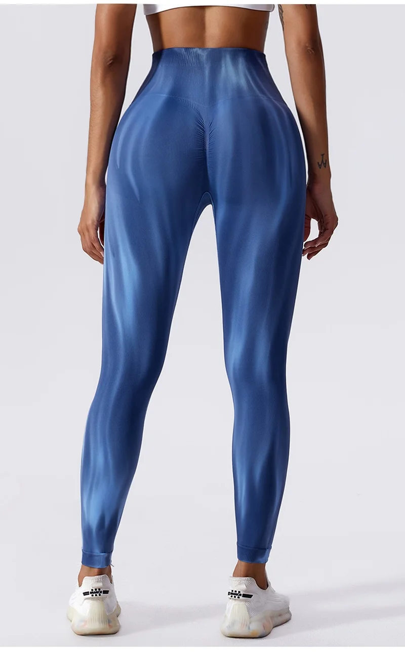 Pantalones de yoga para mujer con estampado tie-dye Cloud Rise, leggings deportivos sexys para gimnasio, mallas sin costuras, pantalones de cintura alta para entrenar.