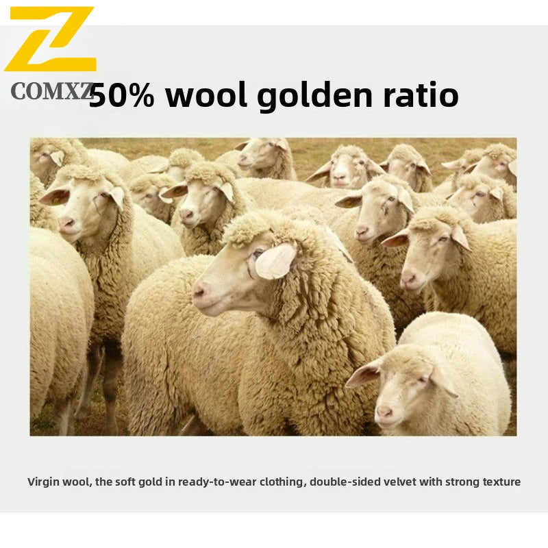 Abrigo de lana de invierno COMXZ 2025 para hombre, estilo retro, grueso, de cachemir, ropa urbana coreana, ligero, de lujo, con mezcla de lana.