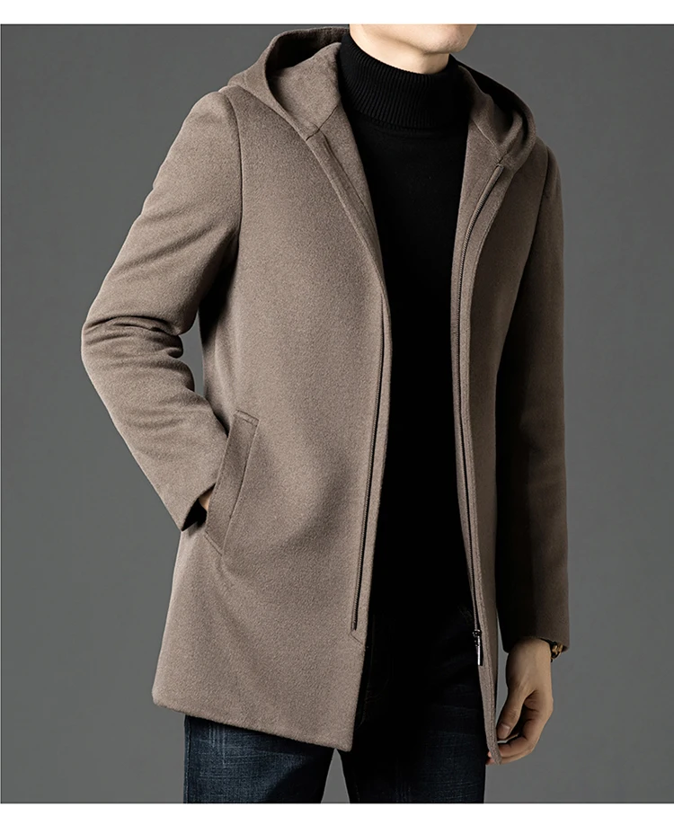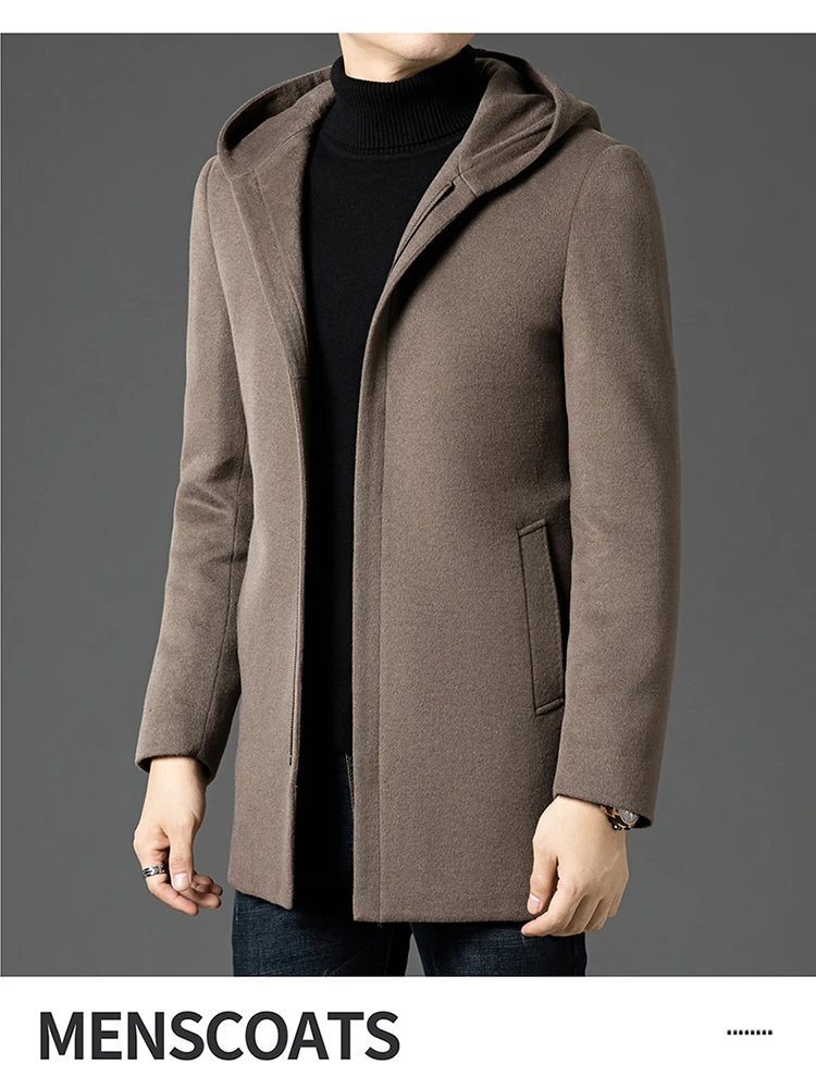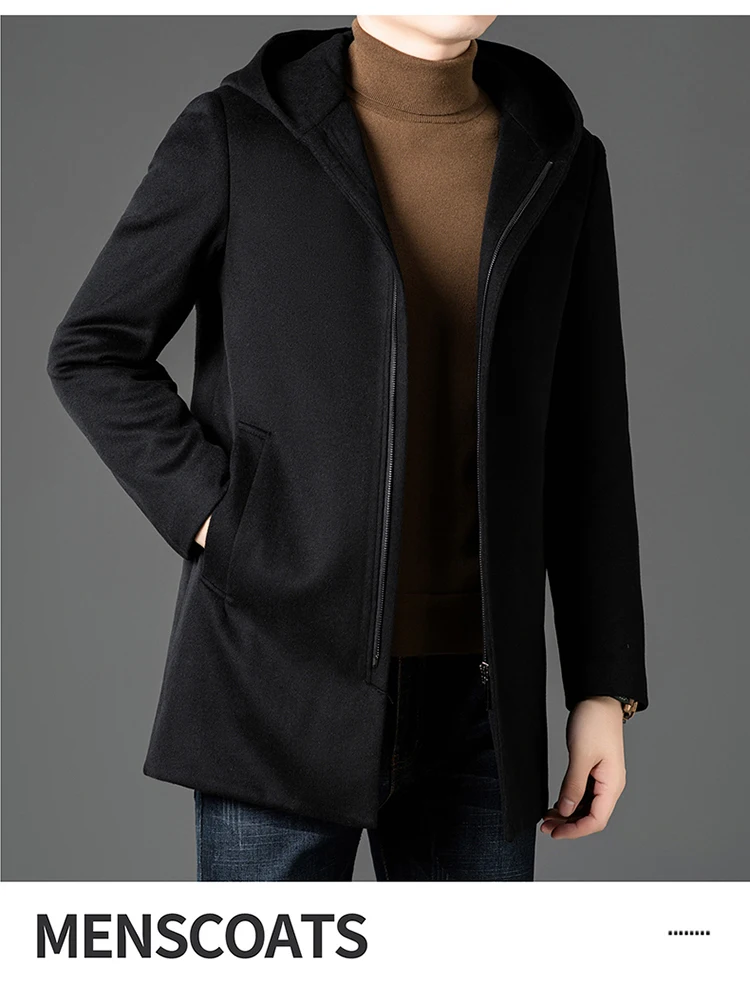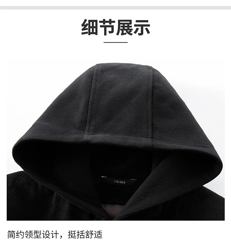 Abrigo largo de lana para hombre COMXZ, colección invierno 2025, gabardina de cachemir de diseño, chaqueta con capucha y forro de plumón de pato blanco, abrigo de lana de lujo