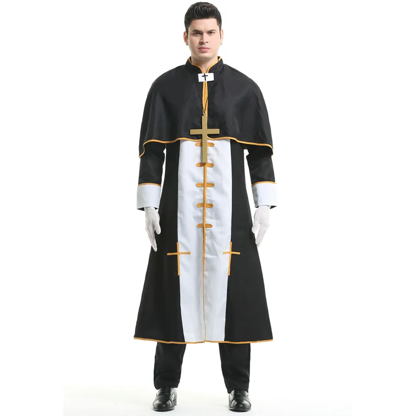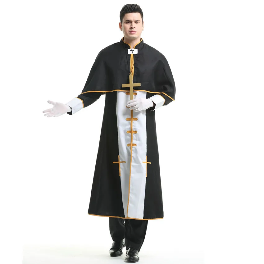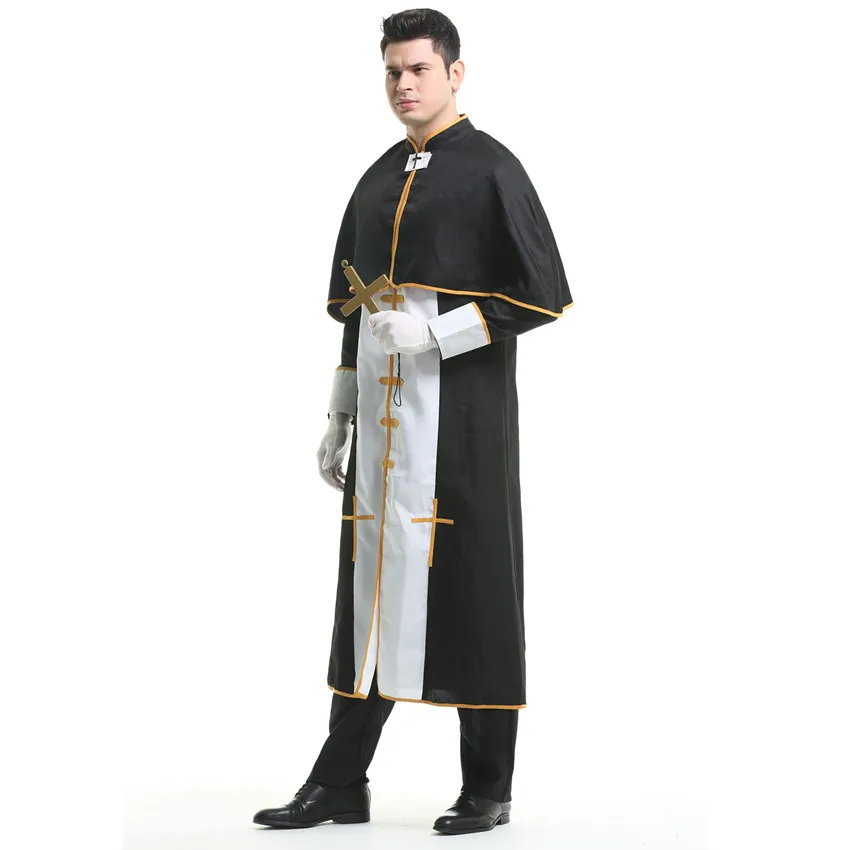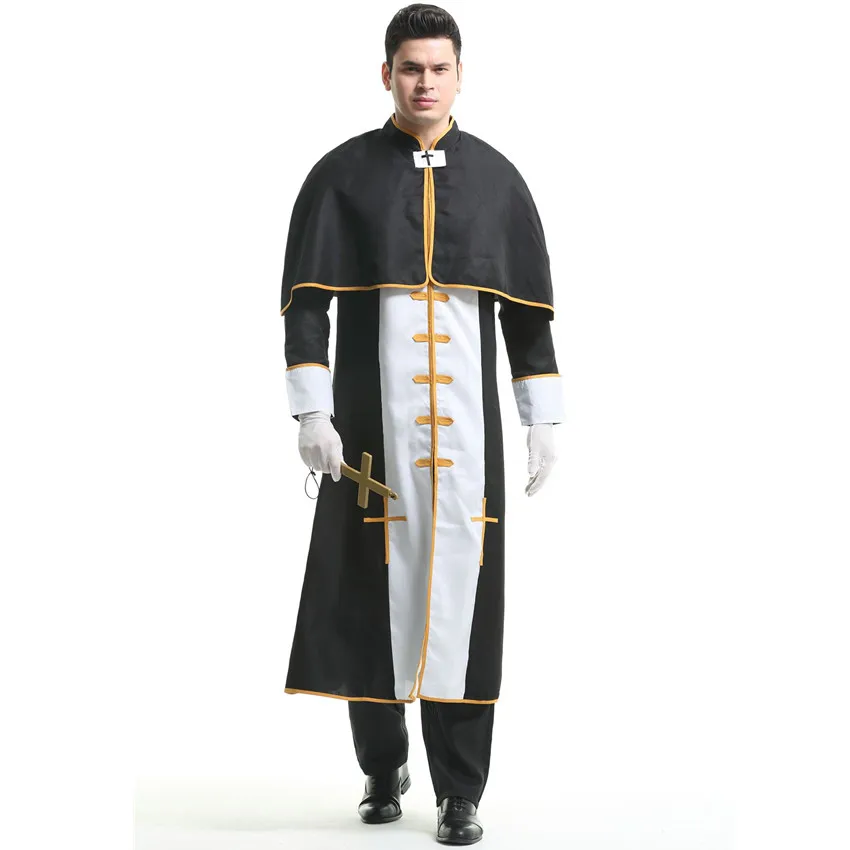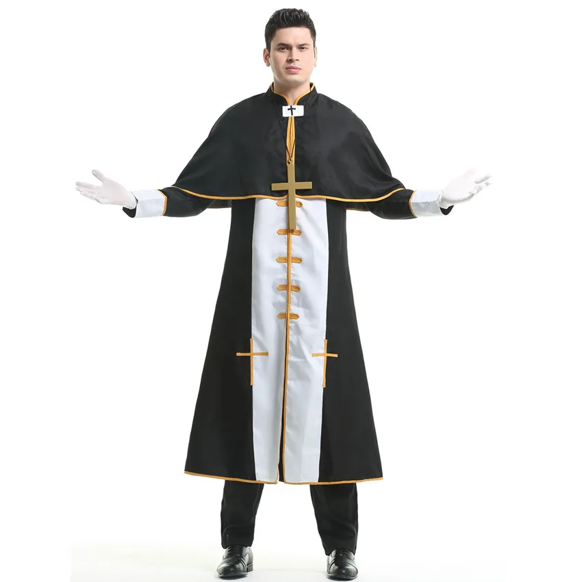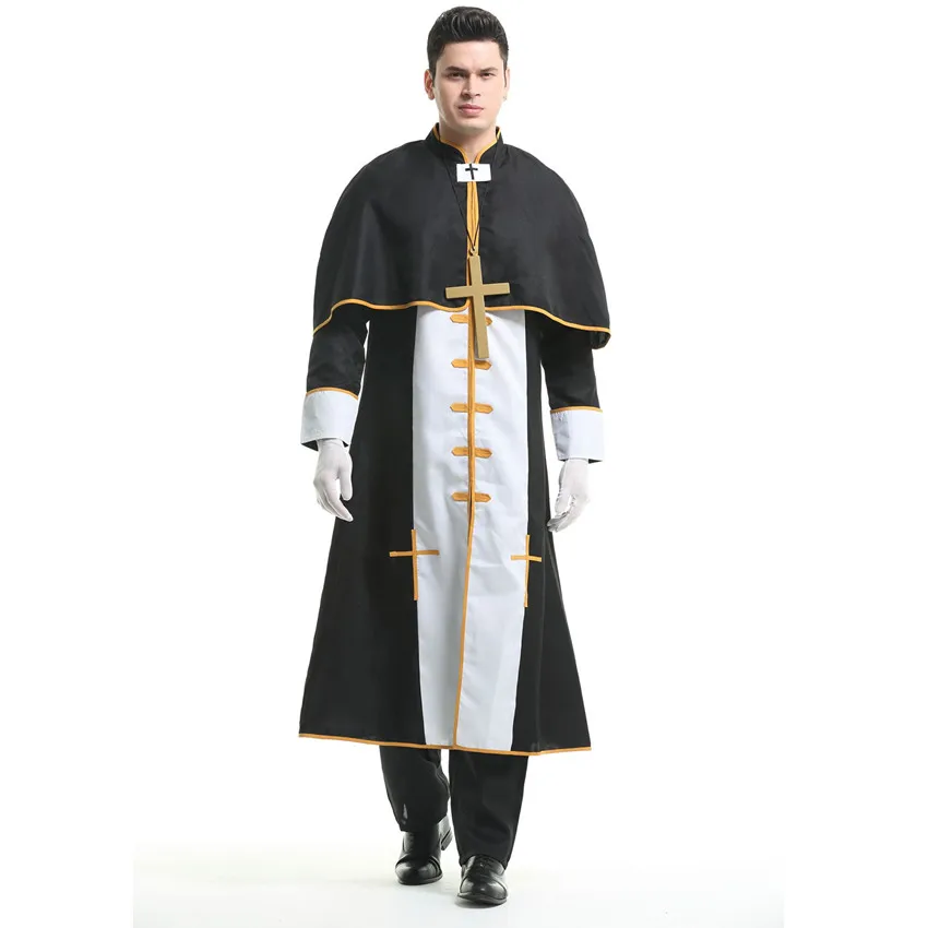 Couple Halloween Costume for Women Men Medieval Cosplay Priest Nun Missionary Costume Church Religious Convent Fancy Party Dress