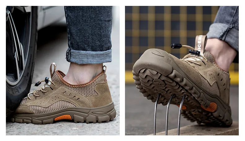 Zapatos de seguridad de piel de vaca, transpirables, para hombre, con puntera de acero, resistentes a impactos, botas de trabajo, indestructibles, zapatillas de trabajo modernas.