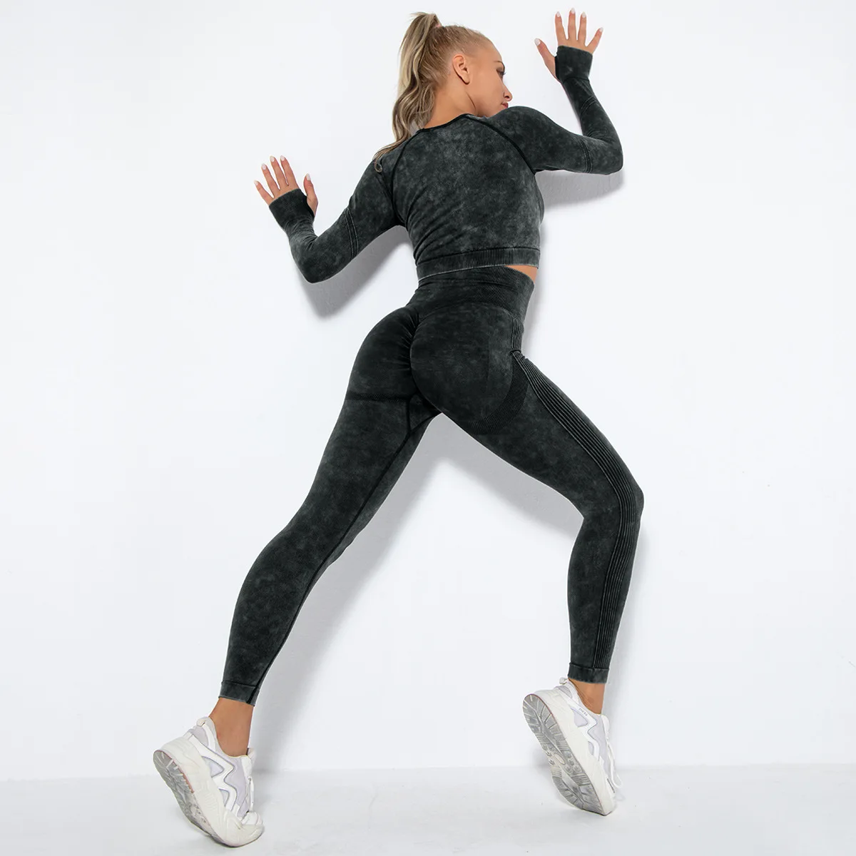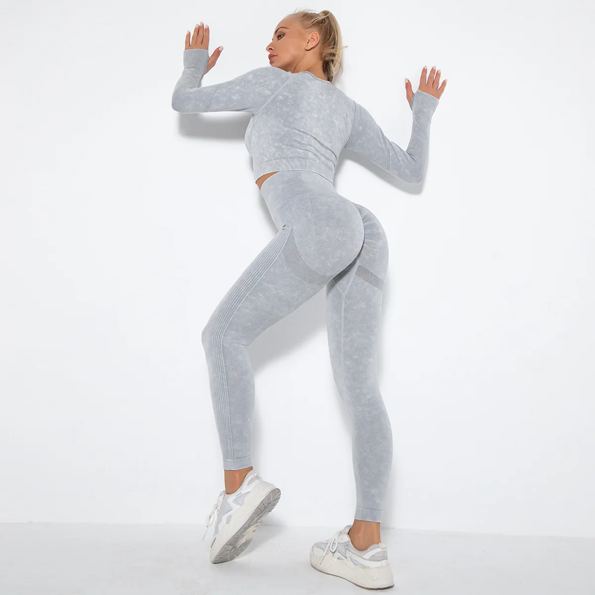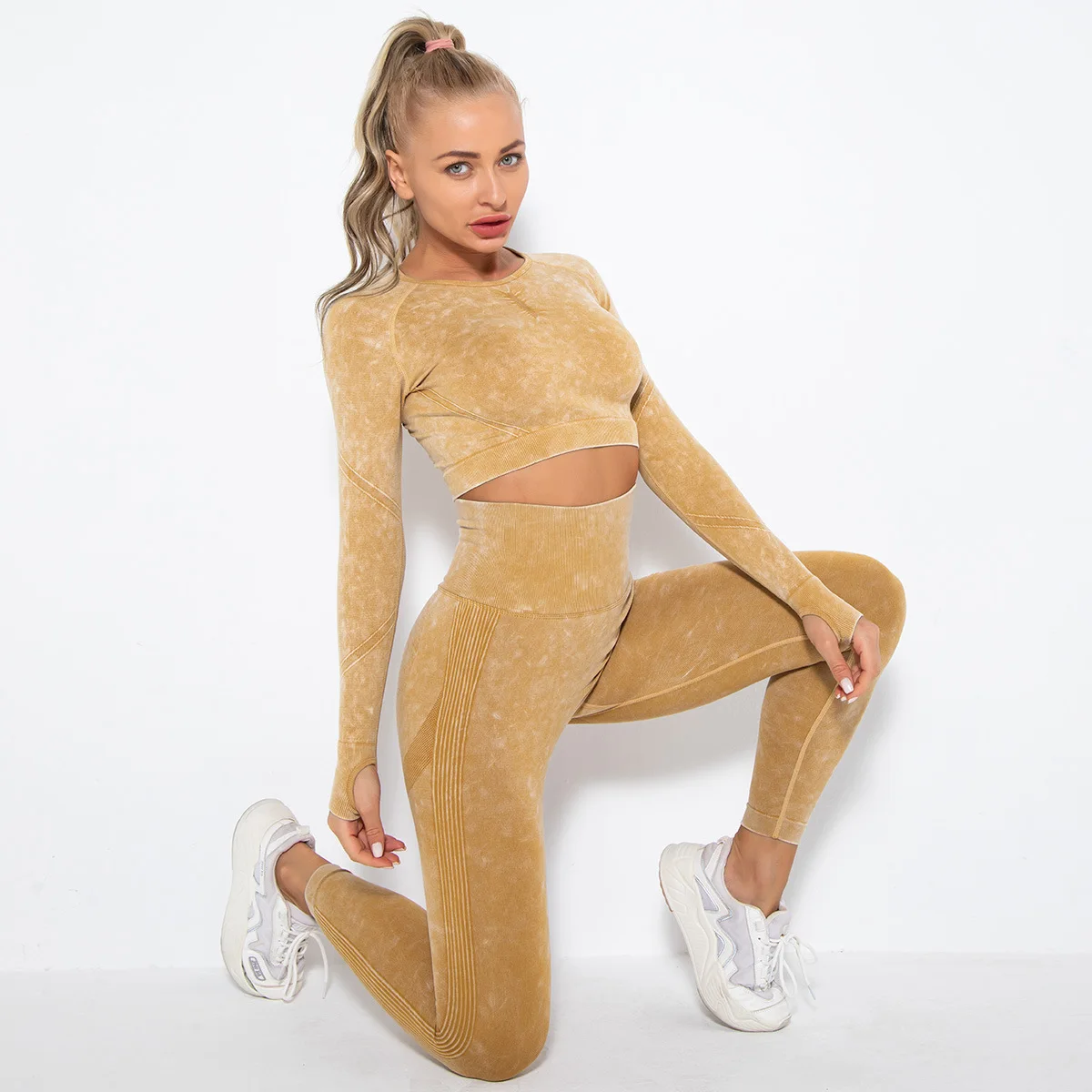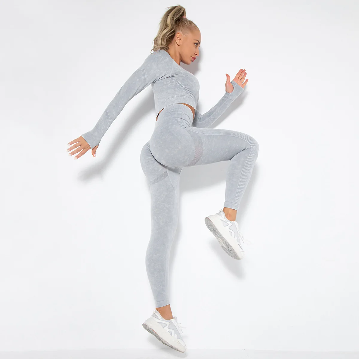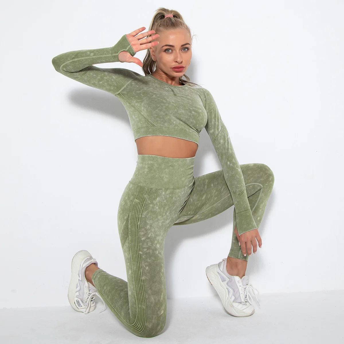 Conjunto de gimnasio con top corto sin costuras para mujer, conjunto de entrenamiento de yoga, ropa deportiva, leggings push up, chándal
