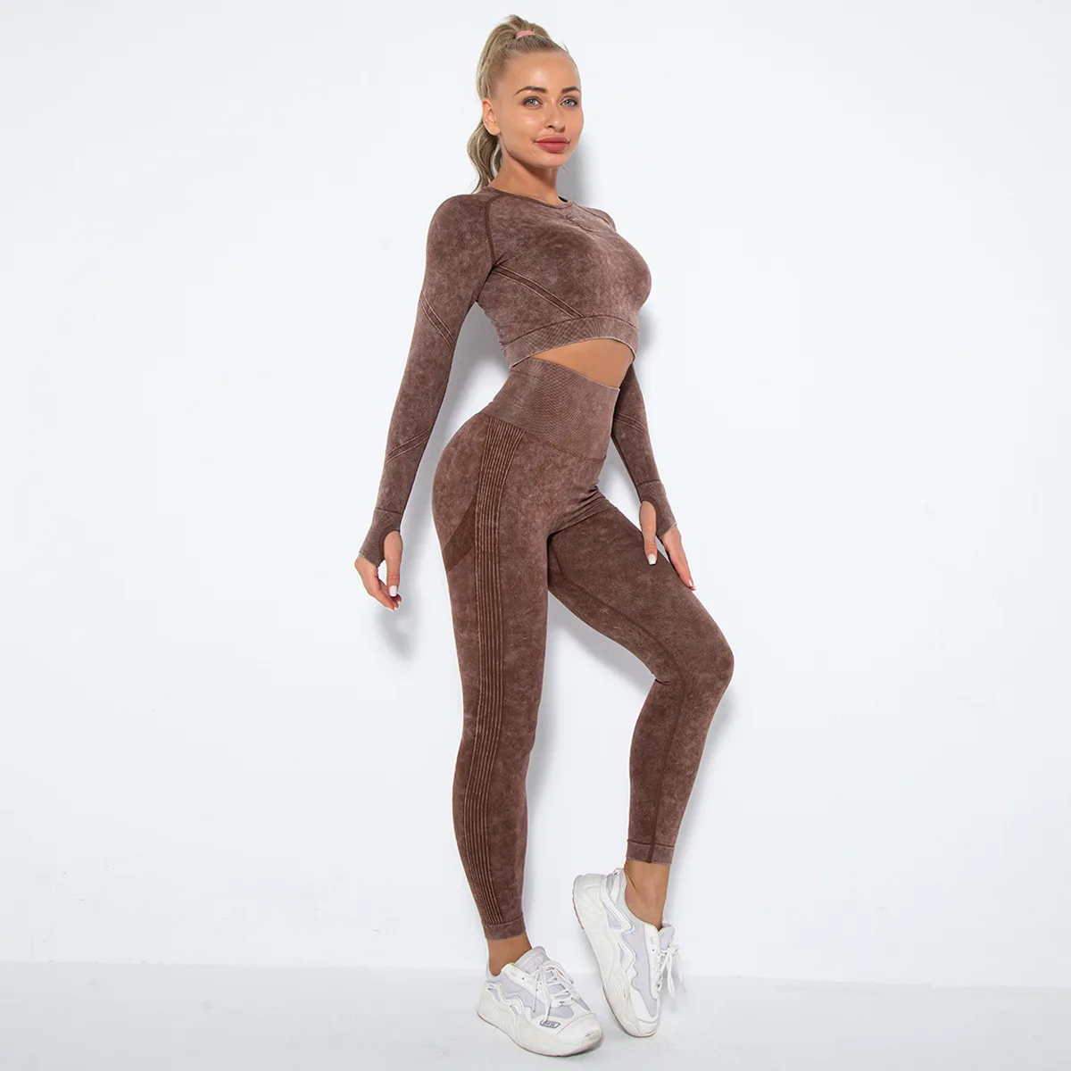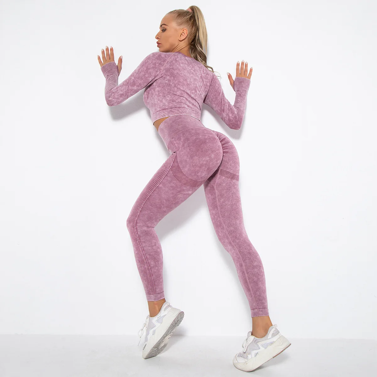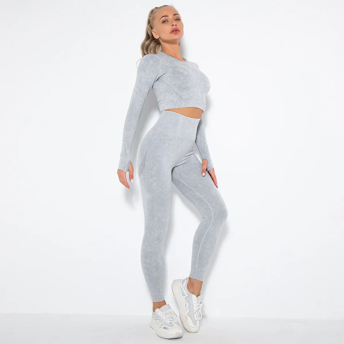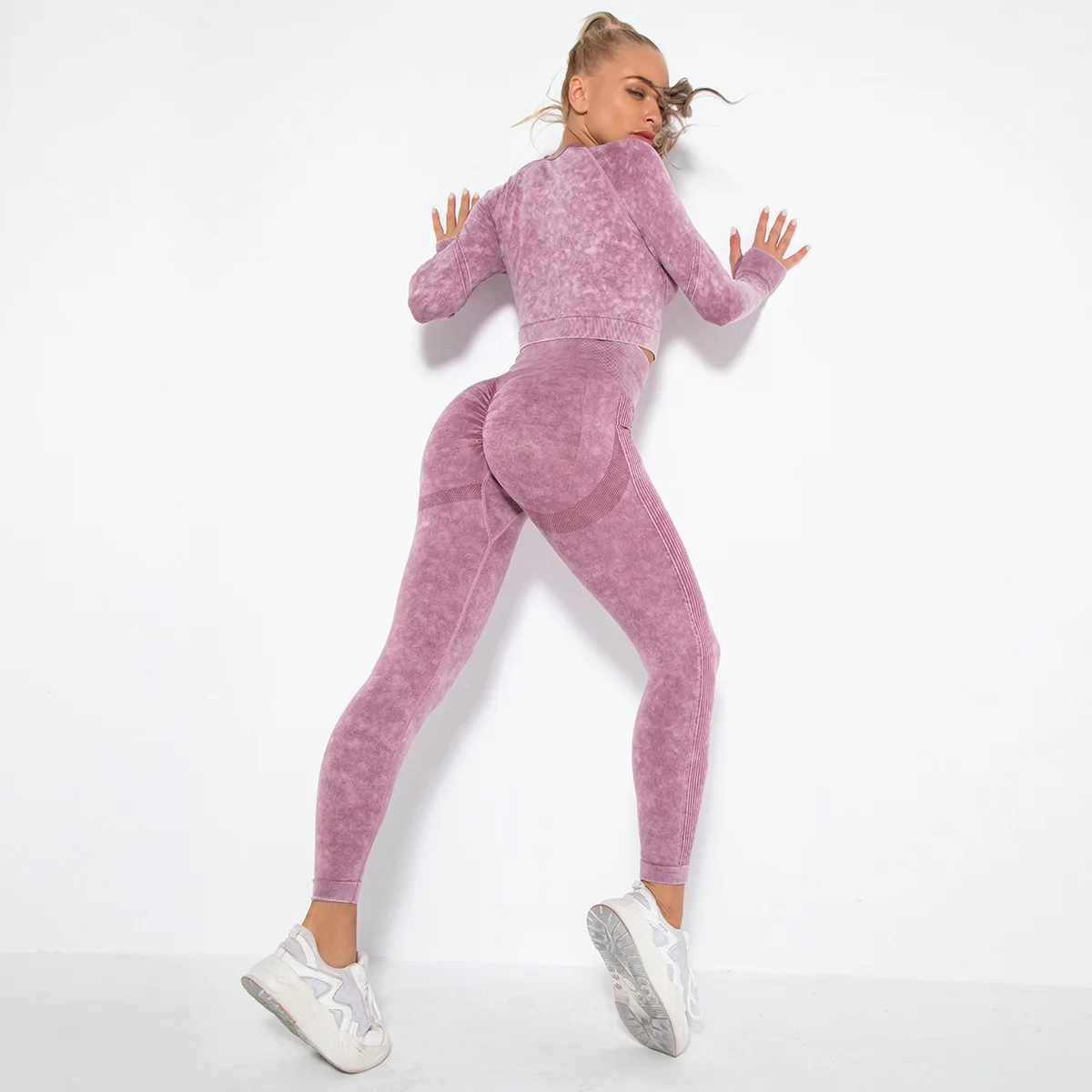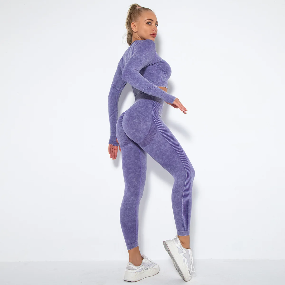 Conjunto de gimnasio con top corto sin costuras para mujer, conjunto de entrenamiento de yoga, ropa deportiva, leggings push up, chándal
