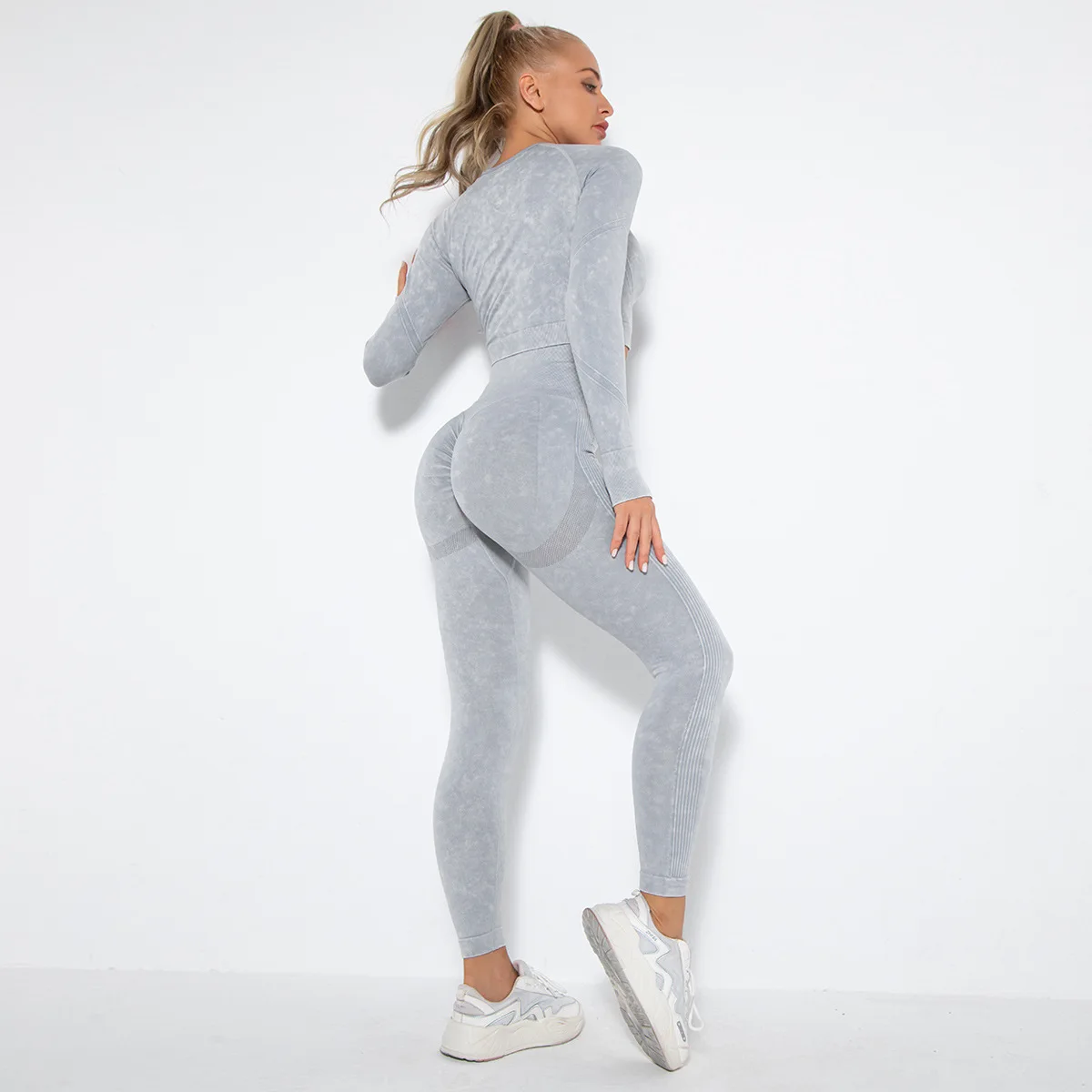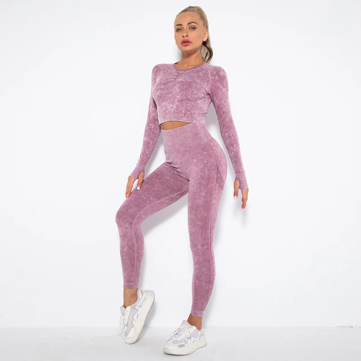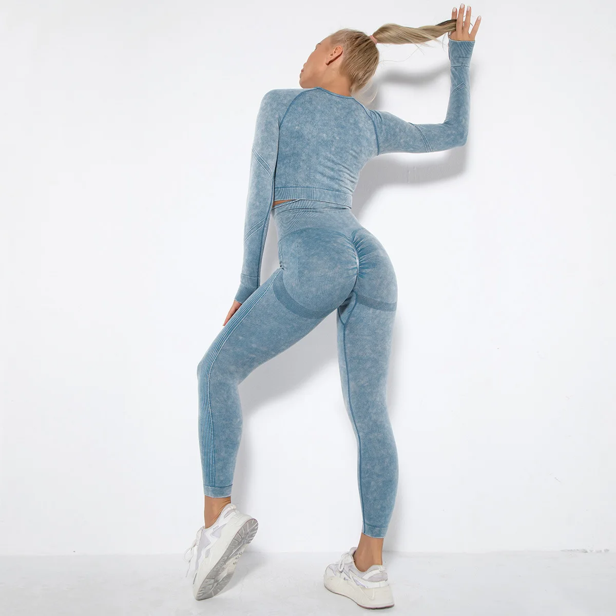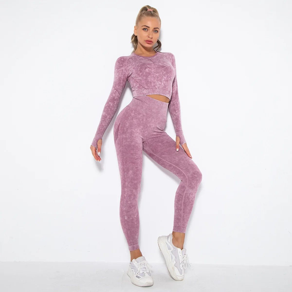Conjunto de gimnasio con top corto sin costuras para mujer, conjunto de entrenamiento de yoga, ropa deportiva, leggings push up, chándal
