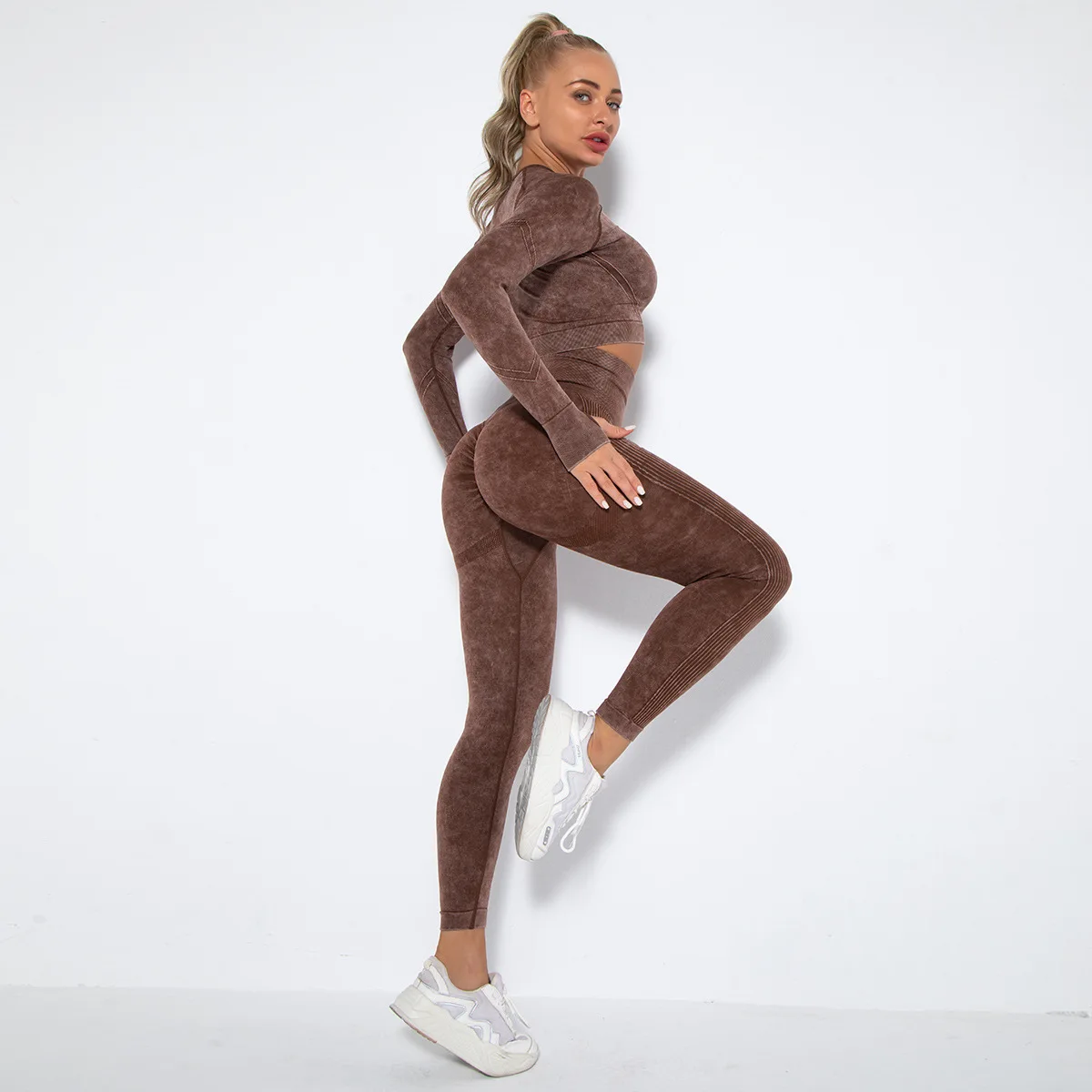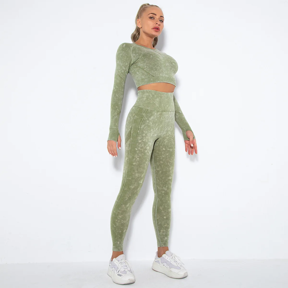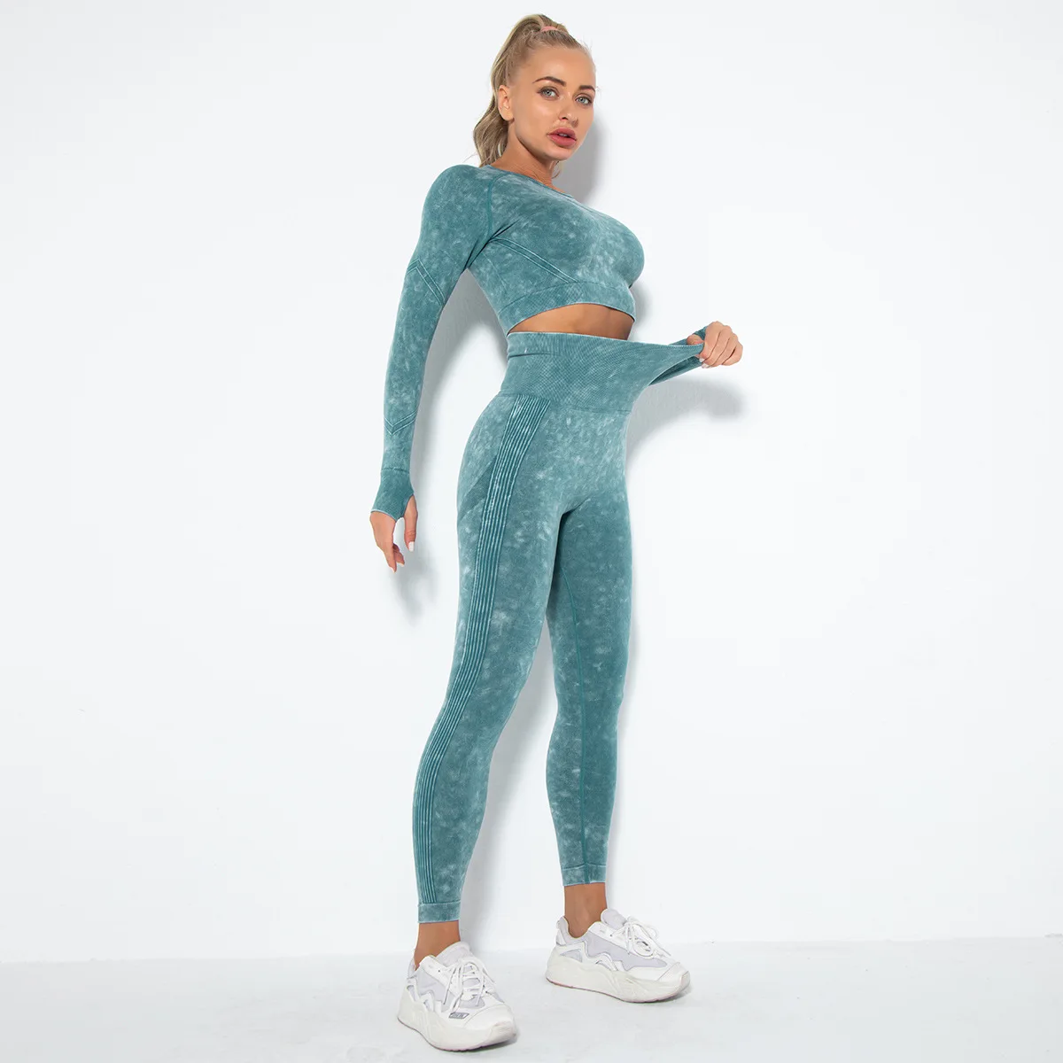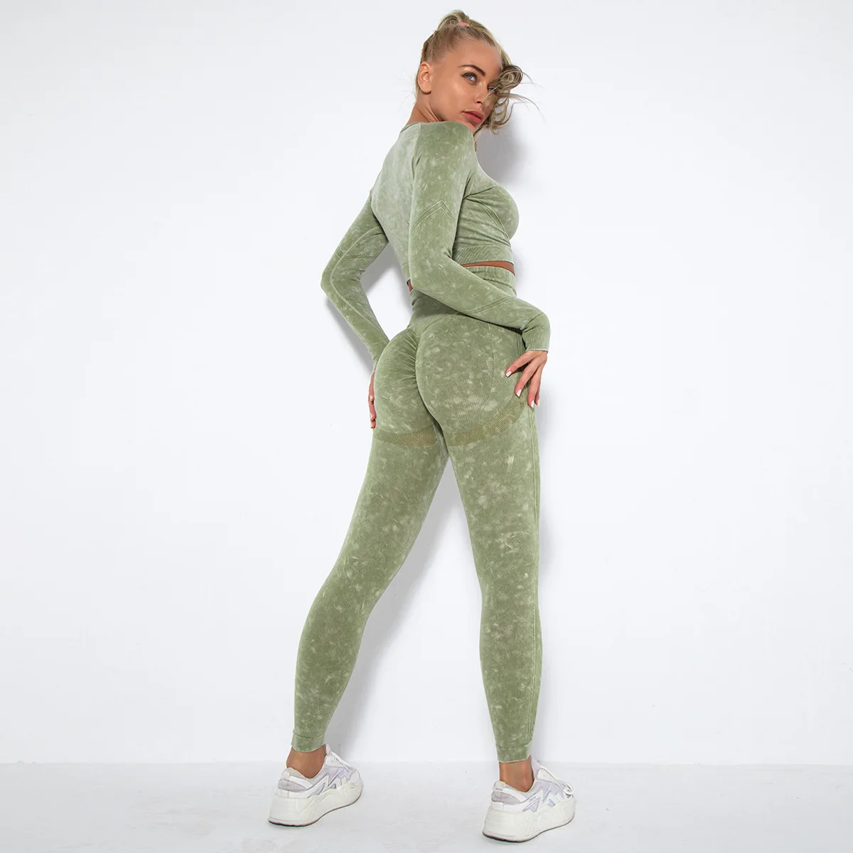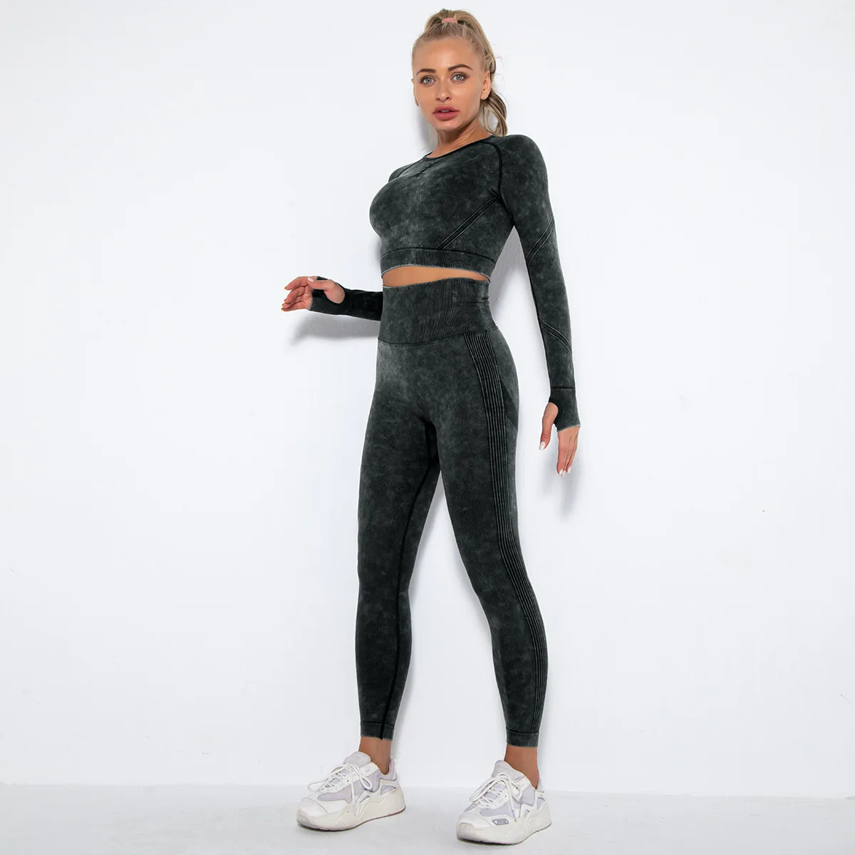 Conjunto de gimnasio con top corto sin costuras para mujer, conjunto de entrenamiento de yoga, ropa deportiva, leggings push up, chándal