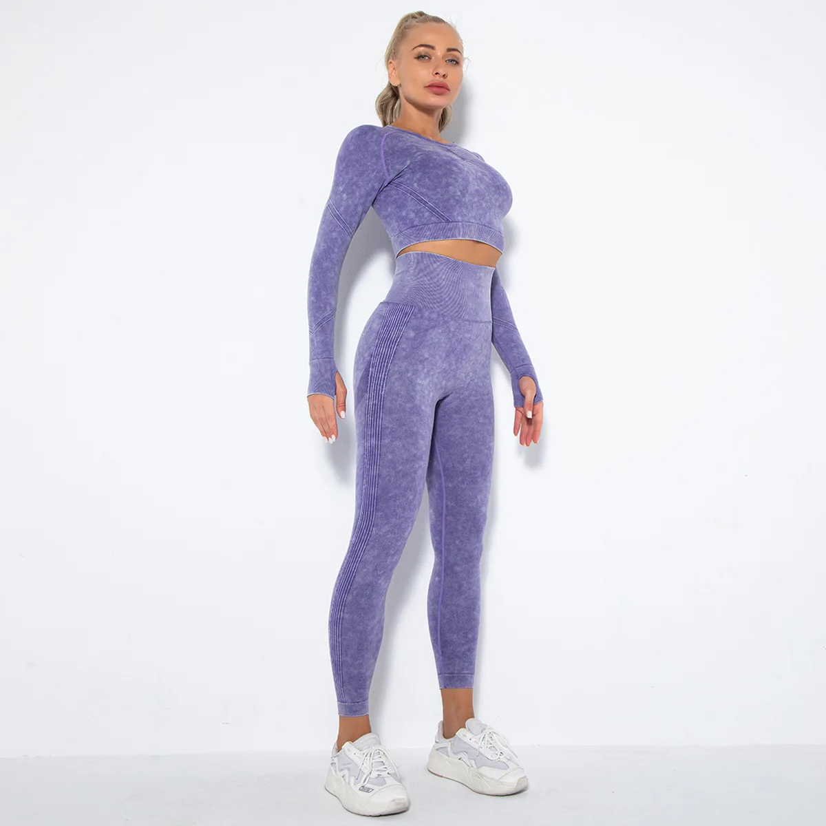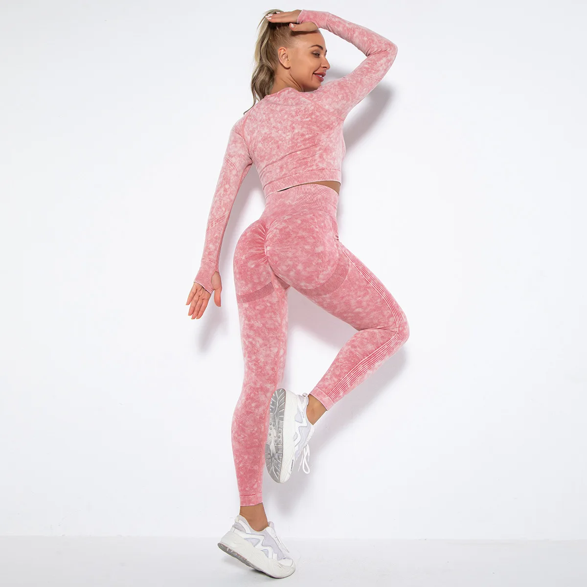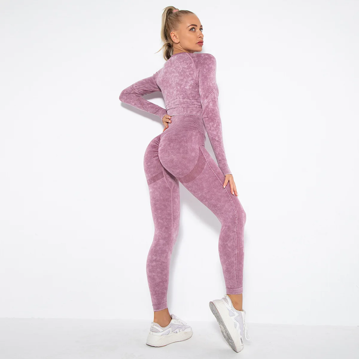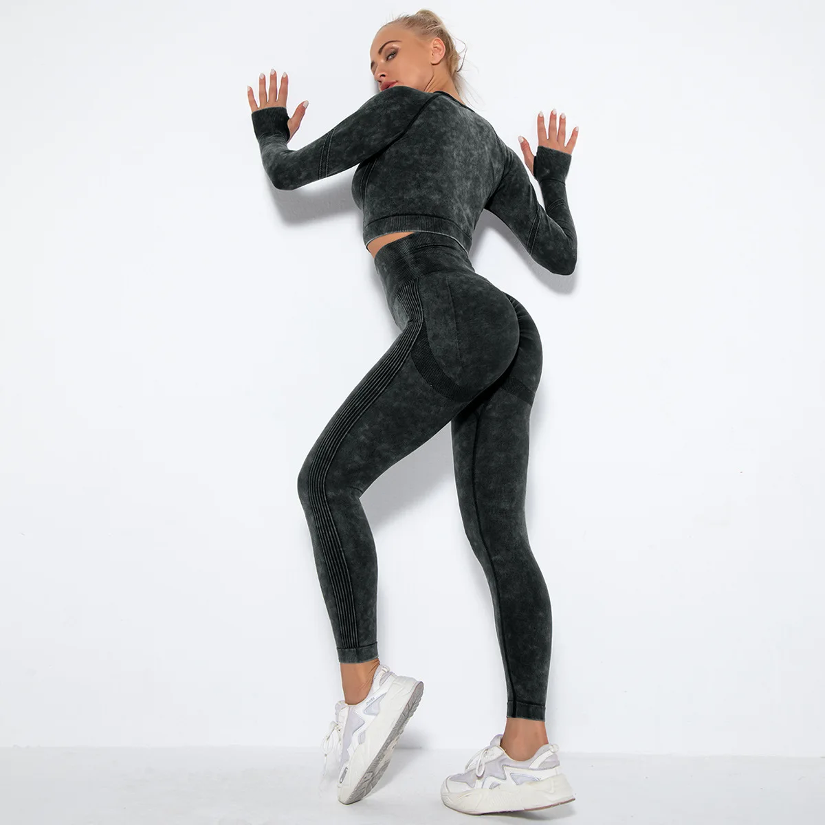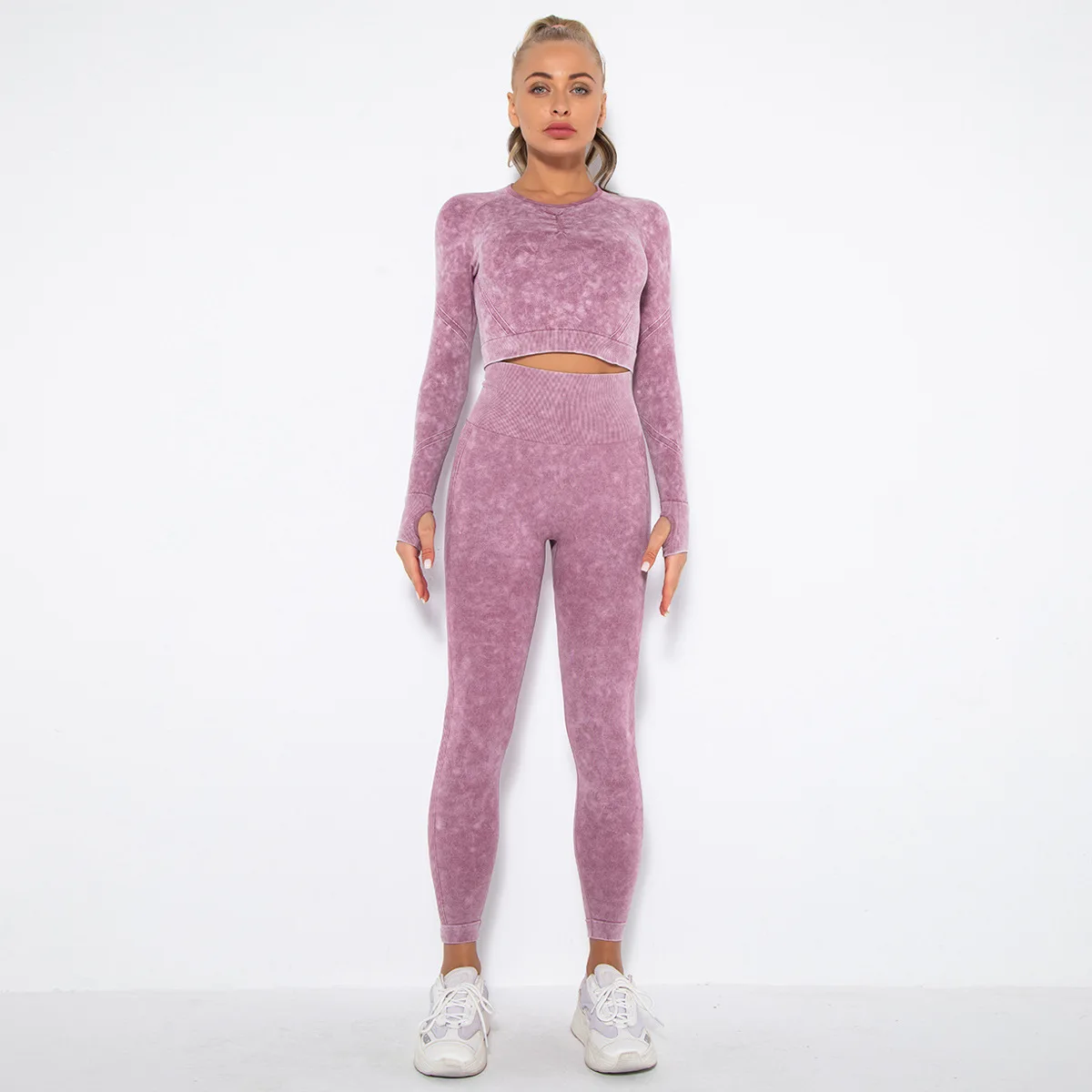Conjunto de gimnasio con top corto sin costuras para mujer, conjunto de entrenamiento de yoga, ropa deportiva, leggings push up, chándal