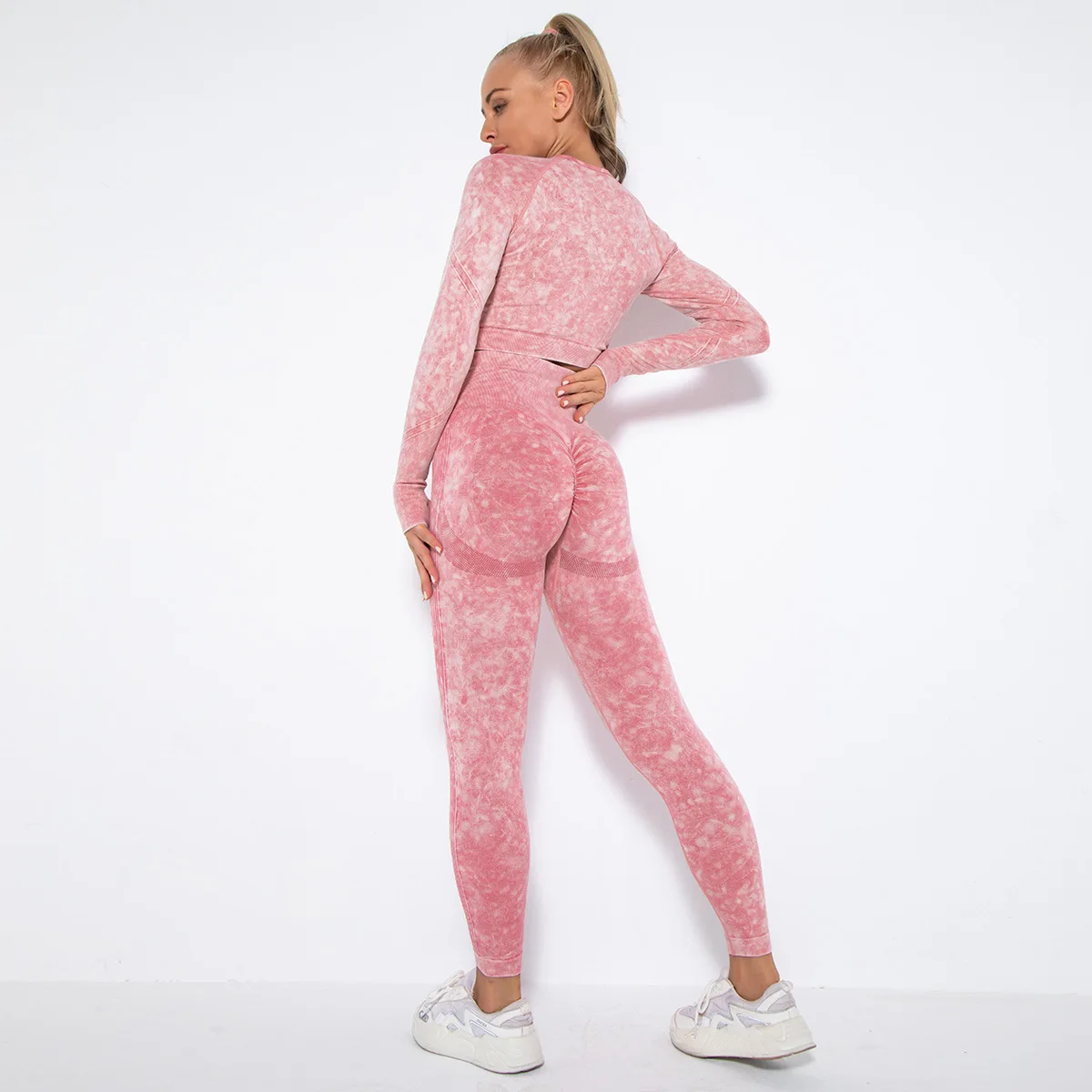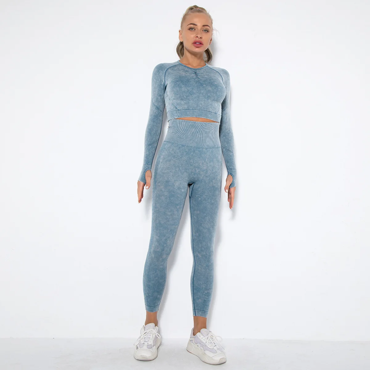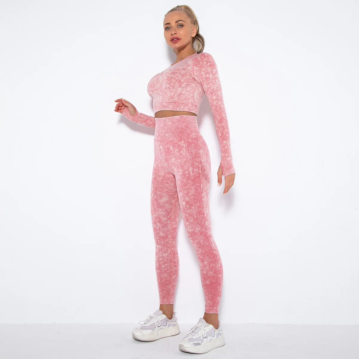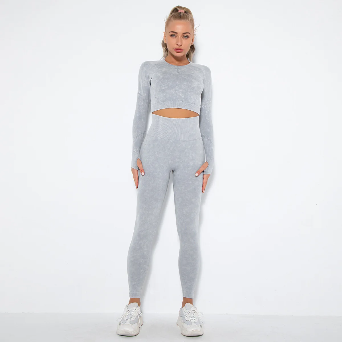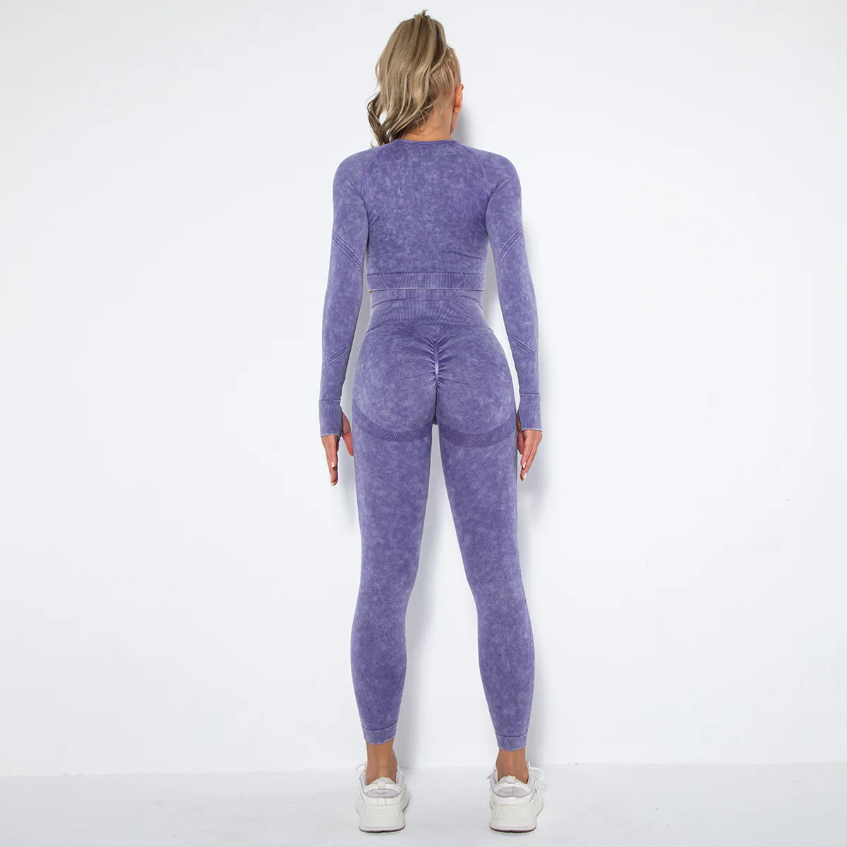 Conjunto de gimnasio con top corto sin costuras para mujer, conjunto de entrenamiento de yoga, ropa deportiva, leggings push up, chándal