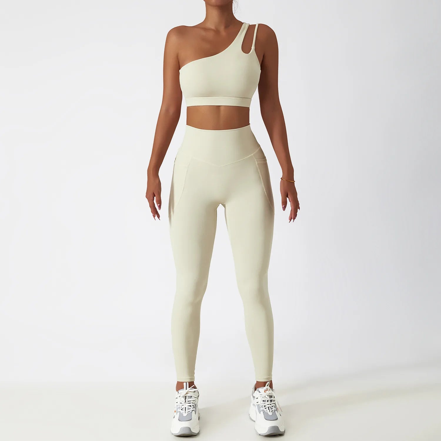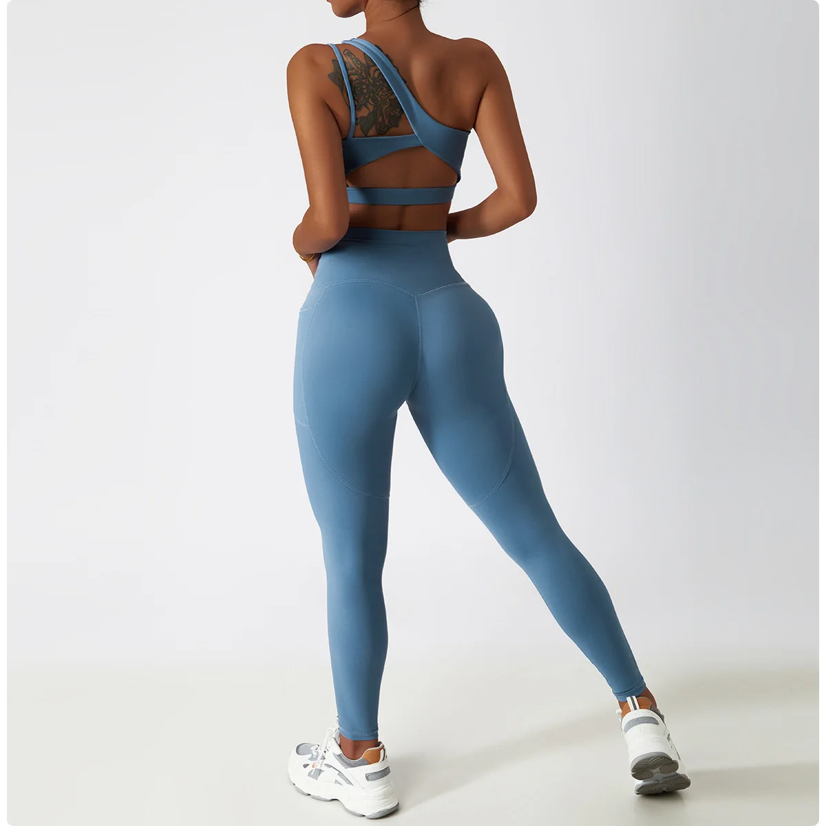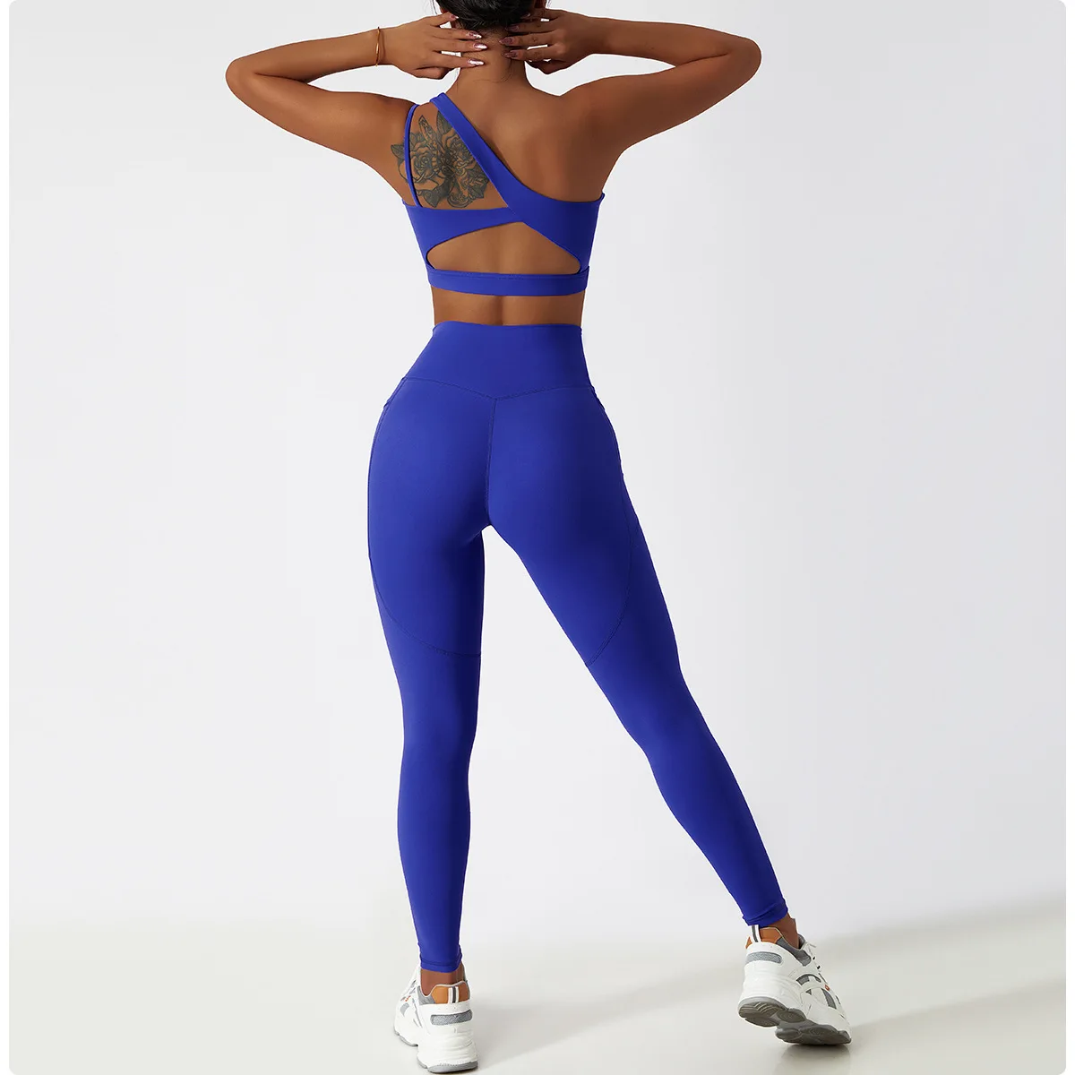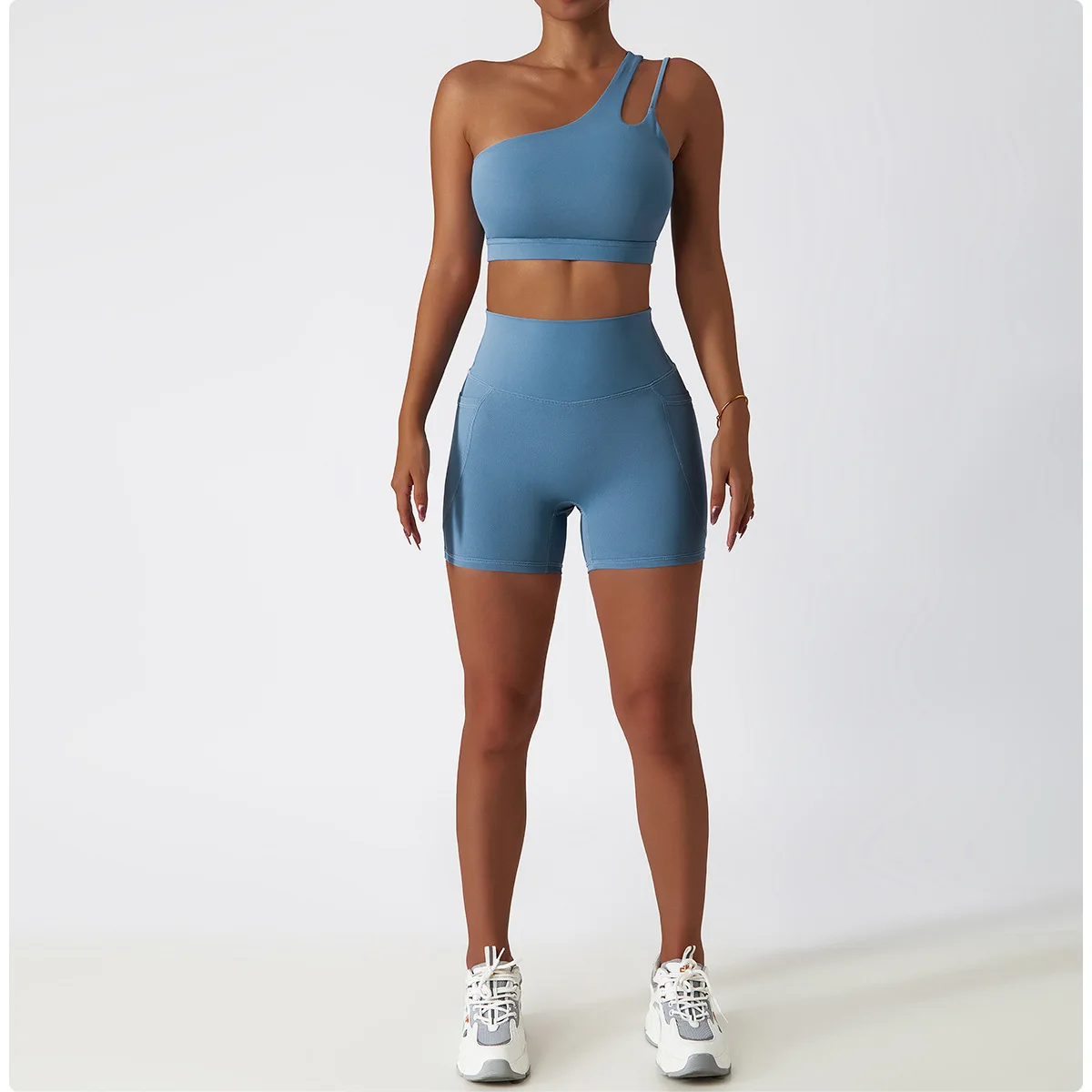 Ctenkevet - Conjunto deportivo de 2 piezas para mujer, sujetador sexy de un solo hombro, ropa deportiva femenina, conjunto de gimnasio para fitness, traje de yoga de secado rápido