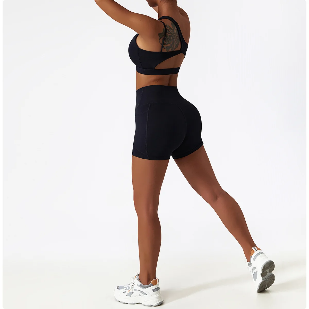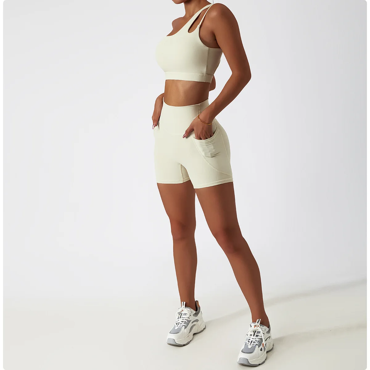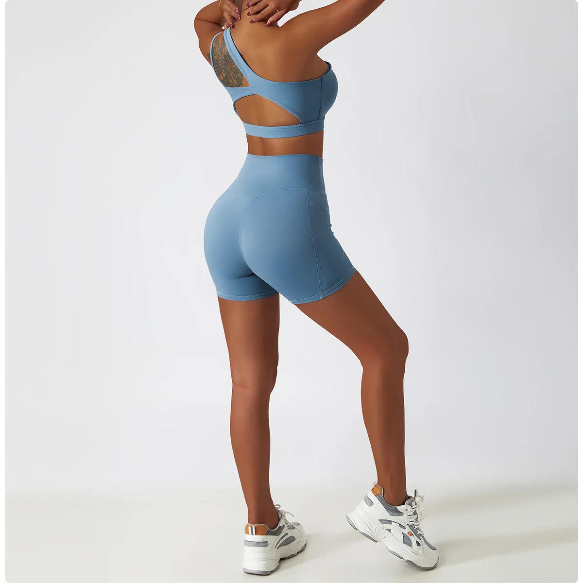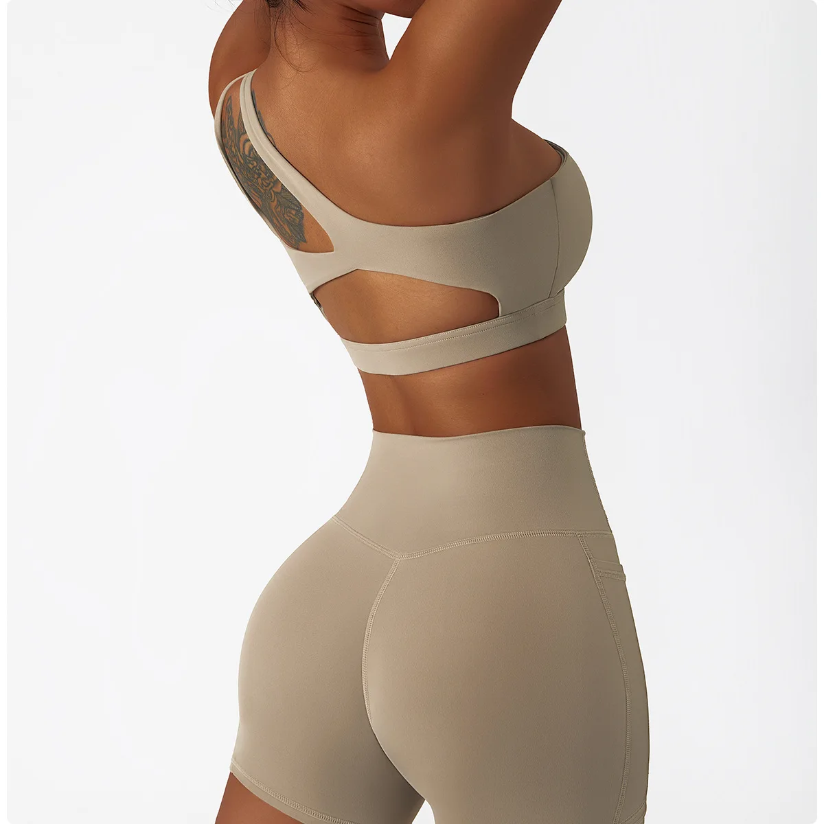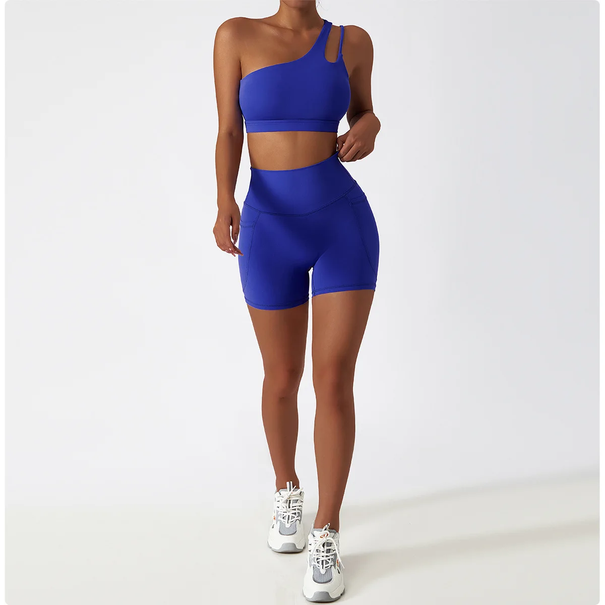 Ctenkevet - Conjunto deportivo de 2 piezas para mujer, sujetador sexy de un solo hombro, ropa deportiva femenina, conjunto de gimnasio para fitness, traje de yoga de secado rápido