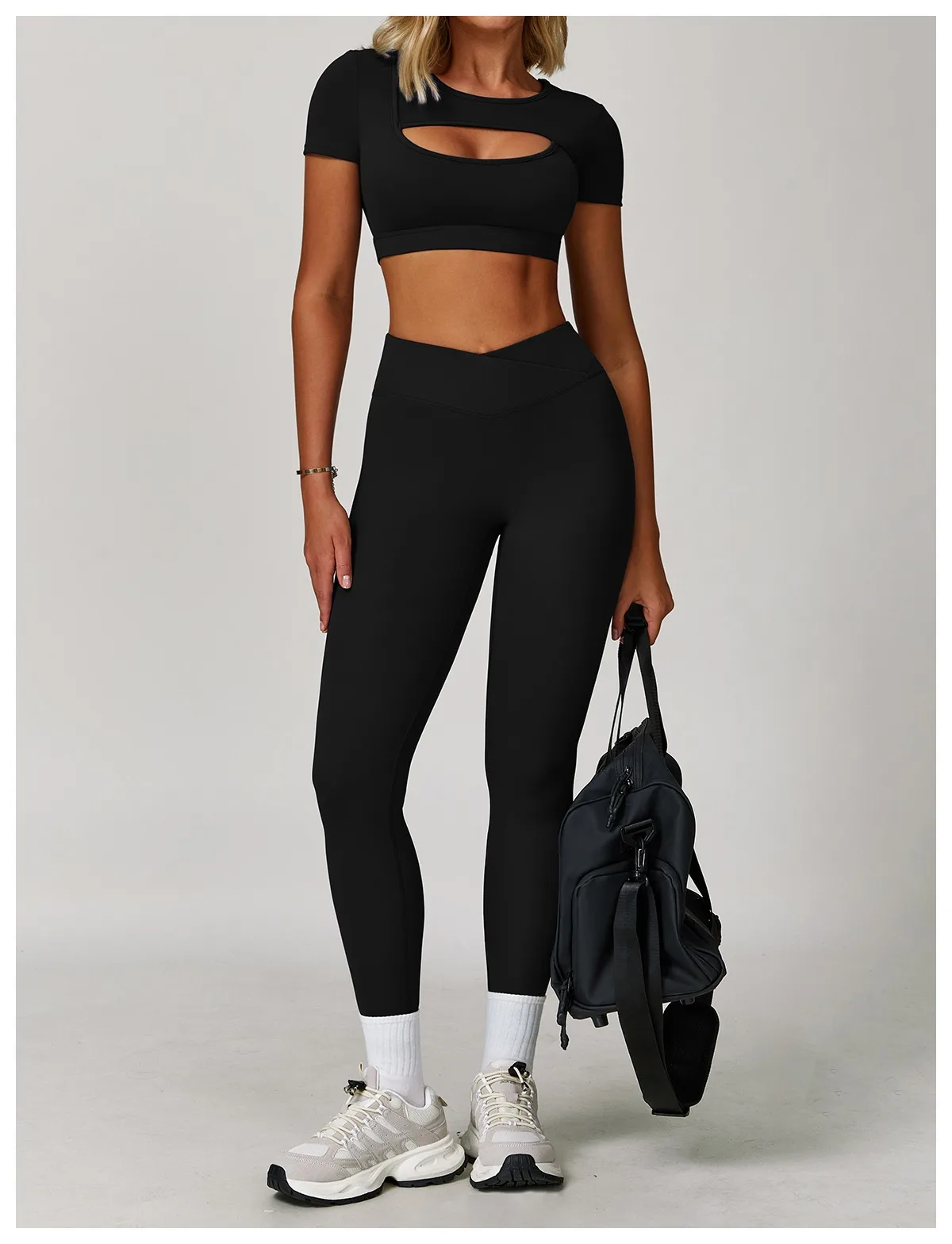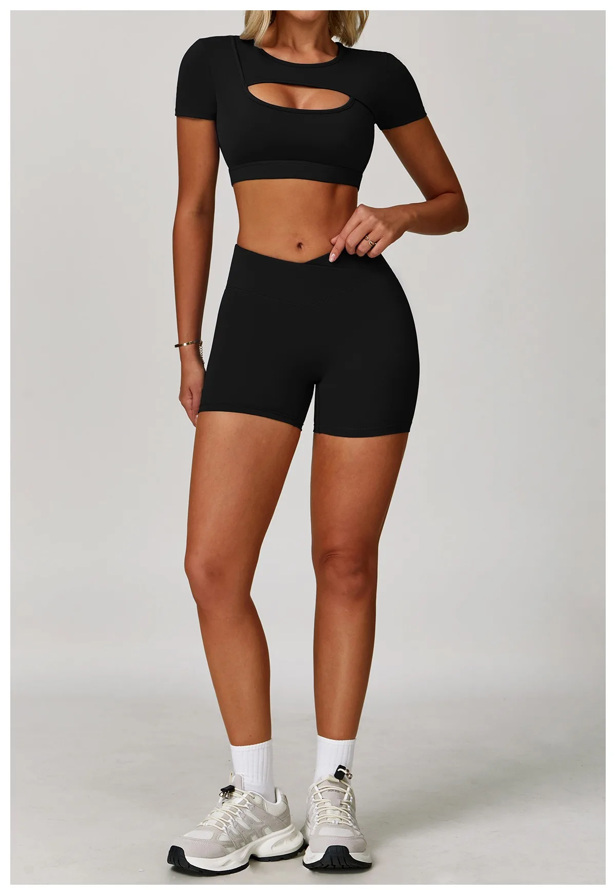 Ctenkevet - Conjunto de 2 piezas de falda corta deportiva para mujer, camiseta push up de secado rápido, conjunto deportivo de dos piezas para yoga